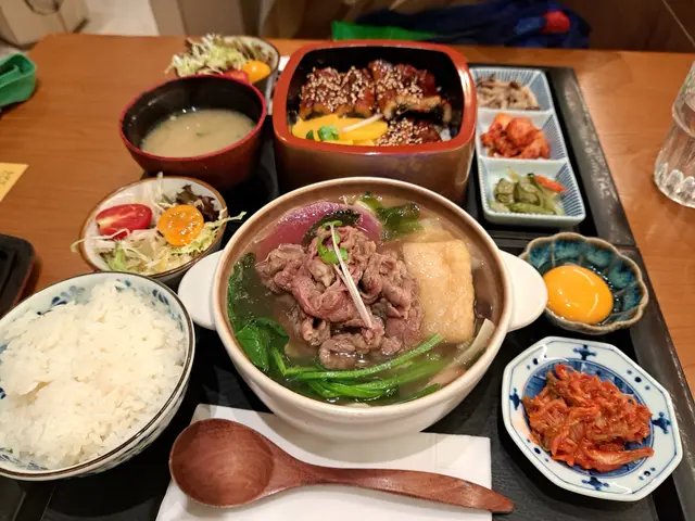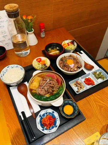 ,後者有日式昆布柴魚湯或關東風壽喜燒湯可選,而每款定食都包咗時令沙律菜、日式醃菜、味噌湯同日本白米飯;此外,仲有啲滋味小食供選擇。溫馨一提,高峰時段用餐時限為60分鐘。雖然,所賣嘅都喺較傳統嘅日式丼飯、鍋物,但卻有幾款特調飲品,分為雪奶酩系列同梳打系列,彩繪圖片睇落頗為吸引,不過,我哋就無試。除上述嘅一人前,店家仲提供一款二人餐,包指定丼飯定食黑毛和牛丼套餐L份量、鍋物定食(2揀1)、小食(3揀1)、飲品(3揀2),做緊特價$370,計落真喺幾划算。