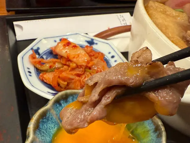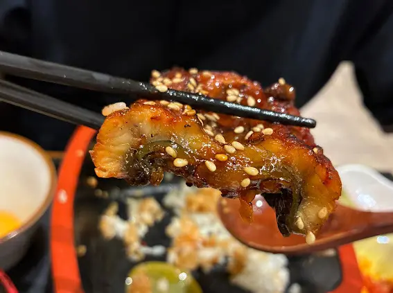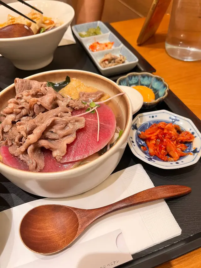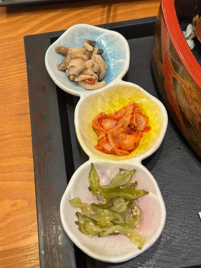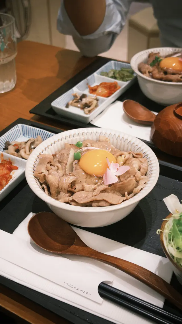 我哋都唔喺咩大食之人,所以,揀個M份量已經好夠。整份定食嘅外觀都幾靚仔,尤其碗丼飯,啲炙燒牛肉鋪到滿滿,打下成隻日本蘭王生蛋,加上一朵食用花同啲芽蔥,賣相別致。開開胃,先食啲沙律菜,襯上一橙一紅車厘茄,淋上柚子醋,簡簡單單,卻清新開胃。熱焫焫嘅味噌湯除咗麵豉味夠香之外,湯底更有少少昆布,味道幾好,食完個沙律再嚟暖和一下腸胃。日式醃菜方面,有本菇、泡菜同海帶,本菇富麻油香,泡菜酸香微辣,海帶爽脆鹹鮮,用嚟伴飯食真唔錯。而啲炙燒牛肉真喺好正,肉質本身已經好嫩滑,經過炙燒,有少少焦香之餘,逼出更出油份,感覺更富油香,拌勻隻雞蛋,沾滿蛋漿嘅牛肉就更加滑口