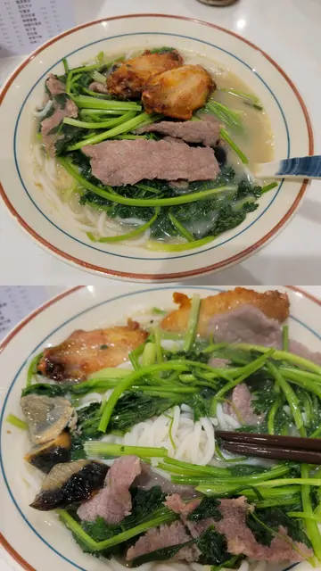 。及第粥,粥底够棉。生滚粥双拼(皮蛋,粉肠)。招牌皮蛋芫茜汤面(鲜牛,鸡翼米线),芫茜汤浓味啲会更好:)。…Read More