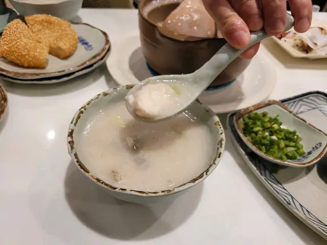 天氣漸漸轉涼,晚上仲會感覺有啲秋意的冬意⋯⋯涼涼哋就想食粥⋯⋯食粥就最舒服啦,又暖胃又暖身⋯⋯生滾粥就最好不過😏😋⋯⋯但係朋友又想食小菜⋯⋯呢間餐廳就啱晒啦😬口水雞口水雞能夠帶出雞肉嘅鮮香⋯⋯麻、辣、香帶點鹹鮮,超好吃!雞件肉質鮮嫩!醬汁相當濃厚!非常香口!椒鹽魷魚這款香脆可口的小食,竟然在這間食店裏尋找到!充滿大排檔的鑊氣!估佢唔到!😋口感酥脆,又鮮味之餘!又帶點香辣😋⋯⋯加埋酥炸洋蔥🧅超正⋯⋯生滾粥雙拼魚腩加肉丸!魚腩相當鮮味!粥底加入魚腩,鮮味倍增!魚腩剛剛熟!非常滑溜!配埋肉丸又有魚又有肉😬⋯⋯及第粥及第粥屬於粵菜嘅傳統之一⋯⋯豬肉丸,豬肝、豬粉腸普通嘅粥店未必會有⋯⋯這是童年的回憶⋯⋯生滾粥將所有嘅材料滾在粥底裏面,非常鮮味⋯⋯炸兩有粥品點少得炸兩⋯⋯最鍾意佢就係醬汁自己可以任加😋煎堆都係我哋嘅至愛!朋友叫了凍朱古力🍫⋯⋯竟然有鹹檸七😎我係唔會錯過嘅😎😬這間食店包羅萬有,又有傳統作品,又有鑊氣小炒👍犀利😬查看更多