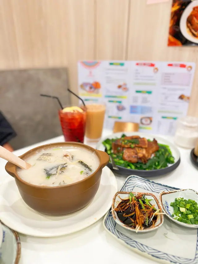 依家啲舖頭食物比較多元化,之前去過呢間知粥嘗樂,而家都唔係淨係食白粥油器咁簡單,而家仲有好多砂鍋粥,小炒及小菜。坐低叫咗叫砂鍋及弟粥,用上砂鍋嘅煮法,內臟嘅鮮甜味特別突出,成個粥入口又綿又滑,咁樣煮嘅內臟特別爽脆。之後就叫咗另一碗艇仔拼肉丸,呢度啲粥可以有三拼,我拼上皮蛋及肉丸,咁食粥都唔使咁悶,食嚟食去嗰幾味,艇仔粥除咗正常牛肉碎魷魚花生,仲用了仲有少少魚肚,所以食材比較矜貴,材料非常豐富。叫咗兩個小菜一個係鮮魷炒西蘭花,魷魚彈牙,西蘭花炒得爽脆清甜,上枱仲聞到好香鑊氣。魚香茄子煲,材料好豐富,用上蒜蓉乾蔥粒豆瓣醬,入口味道充滿鹹香,加上肉碎,一定要配上幾碗白飯。跟餐配埋凍檸茶,完全係粥粉麵店同茶餐廳嘅合體,一班人幫襯完全吾使擔心搵唔到自己想食嘅嘢!查看更多