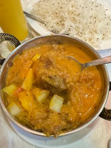闻名已久嘅印度菜,今日终于黎试!我哋点咗二人套餐($268),套餐包括一份杂锦串烧,一份肉咖喱同一份菜咖喱,naan&rice,2杯饮品。串烧有鸡牛鱼各两件,个鸡好入味好嫩滑我哋拣咗羊肉咖哩,羊肉份量都唔少,同埋肉质好腍,好好味菜咖喱拣咗大力菜,但唔系好识得惯,偏油(唔记得影相)老板好好人俾我哋将个饭转naan,我地拣咗garlic & potato naan ,2款都好味,厚薄适中,garlic naan 都唔会好油👍🏻 饮品点咗热柑桔姜蜜,好正!出乎意料嘅好饮!