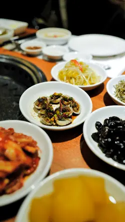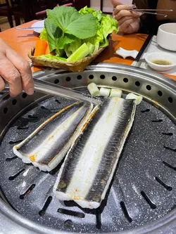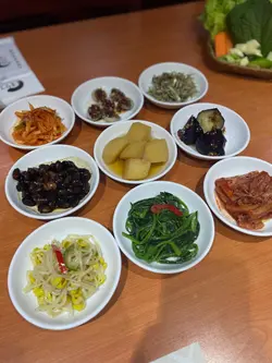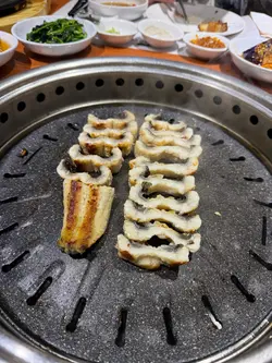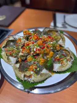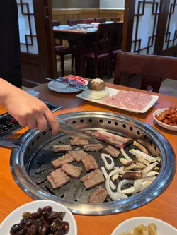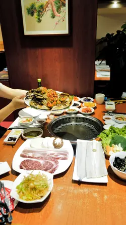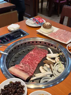 这家尖沙咀传统韩式餐厅,开业逾十年仍保持高水准。门面低调,登上二楼却别有洞天——木梁韩屋设计、古雅灯笼与传统桌椅,瞬间彷佛置身首尔老店。店员精通广东话且态度亲切,更有韩国籍员工坐镇,由落单到烤肉全程专人服务,连食法都细心指导,体验满分!店员奉上十款每日手制小菜,薯仔、芽菜、菠菜、泡菜、黑豆等。最惊喜的还有蛳蚶。〖韩式酱油蟹〗蟹膏丰腴呈橘红色,咸度刚刚好,不掩鲜甜。蟹肉晶莹像果冻,店员将人为我们搭配紫菜拌饭,让我们吃得很满足。〖韩牛板腱肉〗雪花纹理细密均匀,炙烧时肉汁锁紧。店员还教我们三种食法:➀ 喜马拉雅玫瑰盐提鲜➁ 现磨山葵激发辛香➂ 金蒜片夹击浓郁油脂牛肉入口即化不腻,尽显顶级牛肉本味。〖现烧鳗鱼〗鳗鱼外皮金黄酥脆,肉质厚实饱满。店员推荐我们以芝麻叶包裹,夹入甜洋葱与葱丝,再蘸特制鳗鱼酱甜咸交织,韩国直送配料更地道。〖金奖五花腩〗店员专人炭火慢烤至焦糖化。生菜包裹时加入泡菜蒜片,脆爽不油腻。店员又教我们点不同酱汁,每样酱汁都非常惹味。…Read More