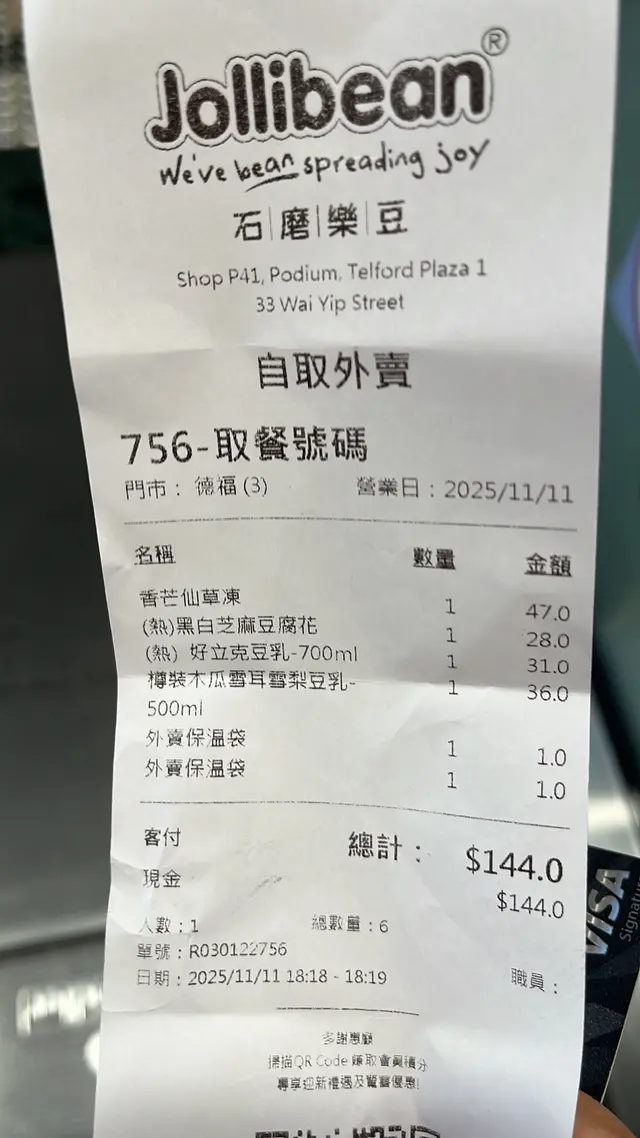 點了熱的,好立克豆乳味道好立克及豆乳味道,都分別飲得到,真的好夾甜度都比偏少少甜新品香芒系列嘅香芒金露香芒金露 $45芒果肉份量好多,芒果粒好鮮甜味道濃郁清甜,口感滑順黑白芝麻豆腐花 $28打開好豆腐花氣味及,分開上了香濃黑芝麻入口豆腐花豆好滑溜,與黑之麻一起食層次豐富豆腐花新品-山藥百合百西米露 $37呢款山藥對我黎講真的健康又養生健脾胃,助消化,入口不會太甜剛剛好我推介呢款下次再食石磨樂豆 Jollibean九龍灣偉業街33號德福廣場1期平台P41號舖…查看更多