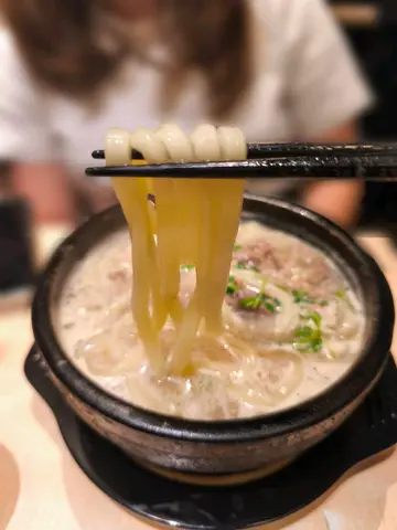 每次路过门口都有人排队,常常刷到大家推荐的post,这次在旺角办事特地试试,店舖面积不大,每个座位都小小、窄窄的,略拥挤,需要排队,但翻台速度很快,店员会给你排队号码和菜单,可以提前选好店内有招牌的石锅乌冬,也有石锅饭、冷乌冬和各种小吃,乌冬一共有5种汤底可选,咖哩、鱼介猪骨、猪骨、黑松露猪骨和辛辣汤。第一次吃就试了2款石锅乌冬,海鲜乌冬(猪骨汤)和猪手乌冬(鱼介猪骨汤),猪骨汤底也不会过于油腻,鱼介猪骨的咸香味会多一点点,当然闻到别人的黑松露汤也是非常不错的。海鲜真的新鲜、甜甜的,里面有大虾、带子、生蚝、蚬、蟹柳棒等,特别喜欢大虾和带子,质素非常不错。猪手是有点酱香的,份量超级大🤣 特别注意的是,店内可以自带饮品~…查看更多