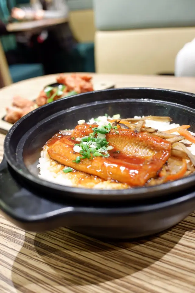 在谈及食物质素之前, 首先要说到它的餐巾. 作为一家面积相当大, 装横不马虎, 有其特色菜式之余价钱也不算极之便宜的餐厅来说, 没有餐巾供应, 要多付才能有有味, 而且是味道浓味的纸巾, 心里面的分数已经打了些折扣, 不是多付一两元的问题, 而是在这个不太能节省成本的位置刻薄食客, 用餐体验真的不太好. 越来越多餐厅有这样的趋势, 不是一个好现象呢!来到这里当然要试其煲仔饭, 午餐能选择的煲仔饭种类不太多, 我吃的是牛肉煲仔饭, 说是煲仔, 其实容器是否偏向砂窝多一点. 先说其优点, 就是饭焦分布平均而完整, 要成块起出来并不困难, 饭身亁爽而不会干涸, 饭身工整. 牛肉肉质嫰滑, 不太感受到用松肉粉腌过的痕迹, 而且每件也相当大块, 份量并不少, 反而在这里见到它的慷慨, 大感不惑.牛肉能在不用松肉粉而变得嫩滑, 用的也许就是天然的方法, 从伴菜中见端倪, 就是酸姜和菠萝, 无论是醋, 姜和菠萝也能软化牛肉, 值得欣赏. 可惜的是酸姜除了酸味和辣劲外, 也带些苦涩味, 至于菠萝则没有汁, 吃起来口感有点干涸呢! 炖汤是淮山鸡肉螺头汤, 汤渣以淮山为主, 鸡肉和螺头分量不多, 汤头颜色清澈但味道偏咸, 和友利比起来还有一段距离呢!Casserole Buddies is famous for her hot pot rice. The container of hot pot rice is casserole more than a hot pot. The rice cook well with the rice crust that is easily to handle. The rice criust is crispy enough and the beef is soft in texture. Using ginger and pineapple as meat softeners are neutral and wise move. However the pineapples are so dry and perceived gingers have bitter taste that need to be improved.…查看更多