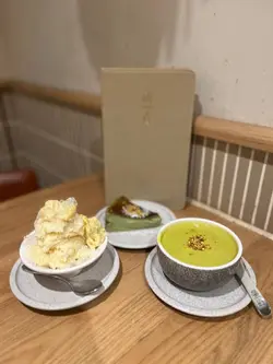 呢间位于闹市小巷入面嘅甜品店,外观简约但环境好干净,光线柔和,好舒服😌🍮 招牌开心果豆腐花 将意大利开心果打成幼滑开心果糊,拌入每日新鲜制作嘅豆腐花,口感又滑又香。 第一口入口就感受到浓郁坚果香气渗出,后味仲有淡淡豆香,唔甜腻反而好清新~ 而且入面仲有啲细碎开心果粒,食落层次丰富,有少少脆感,好满足💚🍰 开心果巴斯克蛋糕 另一个开心果控必试!外层微焦香,内层系流心芝士质地~切开果刻真系流出嚟🤤 开心果酱混入芝士蛋糕入面,味道香浓得嚟唔腻口,又保留咗巴斯克应有嘅湿润感。配埋一杯热茶,简直完美组合☕️🍧 榴梿冰 榴梿味超香但唔呛鼻,冰沙口感幼滑,甜度适中。 食落唔会有啲重手嘅人工味,反而系自然果香,夏天食一啖即刻清爽~整体嚟讲,呢间店糖令人惊艳 ,由用料到配搭都见心思,无论系开心果创意系列定港式经典,都做到平衡得嚟又保留住原汁原味~ 环境干净简约,店内用木系家私配米白墙,整体气氛好chill,食甜品都感觉疗愈…查看更多