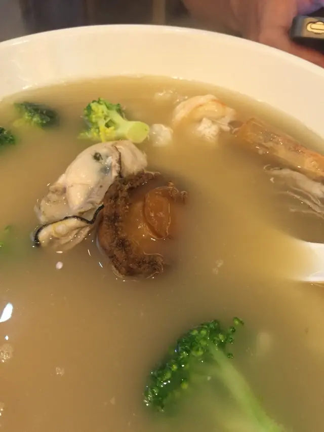 第一次打食評,一定要好食先推介!依間店好特別,你中意的就會食到停吾到口,吾中意就係吾中意。    我今日叫左两樣,一個係鮑魚肉碎飯,先介紹下,真係好好味,鮑魚好入味,老闆真係好俾心機煮,啲蠔好鮮味,重點係配埋過冇味精的鮮雞湯,簡直冇得頂!!! 另一樣係碰碰面,自選配料,中意食咩就選咩,重free 過譚仔,要撈,要放湯,你話事,真係好好,我特別推介係佢地豬頸肉,大花菇,大花菇佢地有滷過,所以好夠味。最後配埋佢地的杞子菊花蜜!冇得彈冇得輸!一個字,正!!!查看更多