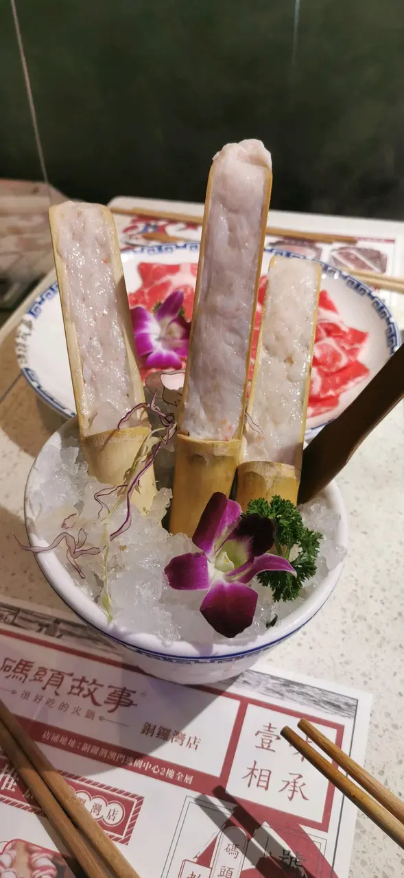 ,當晚只食一條。另外,牛舌切到肉絲咁幼,一啲口感都冇,完全唔知食緊乜,萵筍薄過紙,一落鍋3秒好夾起,唔係就溶到乜都唔見,好多嘢都切到勁薄,證明廚房刀功一流。最好食嘅係黃喉、鵝腸同埋最平、最普通嗰碟牛肉,脆鯇同鴨血都唔錯。