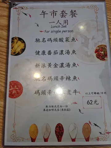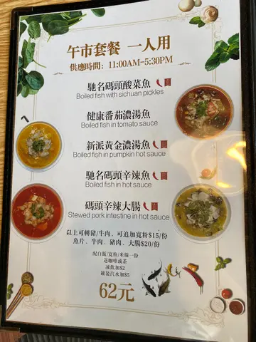 码头酸菜鱼北角真心觉得佢好👍🏻喺北角去观塘嘅码头,一啲都唔起眼,咁啱朋友见到入去试吓,未入去以为好似大排档feel,入到去先至见到非常整齐干净,无论服务传菜,清洁姐姐,厨师到收银,都非常有礼貌同亲切👍🏻👍🏻而佢哋星期日都有lunch set, $62大大碗,有饭/米线/宽粉可以选择,超足料又好味,仲要包嘢饮,加两蚊仲可以转冻饮,见隔离枱炒小菜,个样都非常好味,希望将来可以有机会试吓蕃茄浓汤牛- 非常足料,有好多菜同金菇,牛肉多而且唔韧👍🏻码头酸菜鱼- 两个朋友叫咗酸菜鱼,一碗嘅鱼完全冇骨,一碗啲鱼有少少骨,但系都系非常传统味道,好多料好好味黄金浓汤牛- 虽然佢餐牌上只有一只辣椒,话好少辣,但系如果唔食得辣嘅朋友千祈唔好叫,都系叫蕃茄汤比较好😅不过佢味道系好好食嘅总括嚟讲,个人觉得码头酸菜鱼系好食抵食,值得去支持嘅小店👍🏻👍🏻