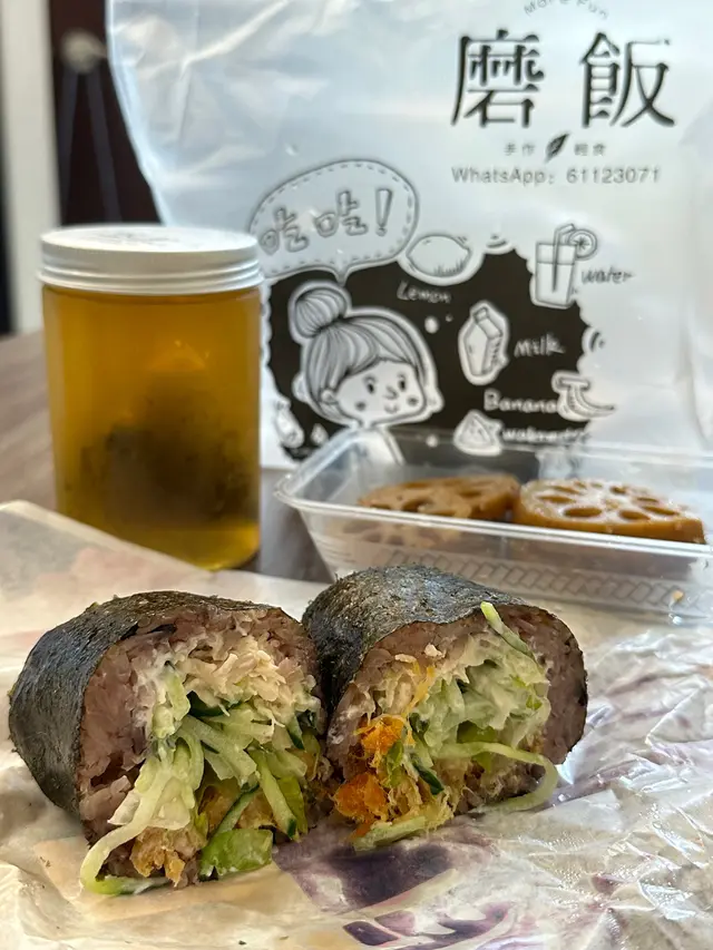 磨飯 (元朗)📍元朗鳳琴街19號鴻運中心地下14-18號舖之前係出荃灣/旺角買過一間幾好食嘅紫米飯團但要專登搭車出去食🙈 我又唔想有日聽同事講元朗有間賣紫米飯團好好食嘅😍我聽完之後又點可以唔試 😂我點咗佢地嘅餐紫米C餐-$45蜜糖芥末雞絲加芝士碎(+4蚊)配玉子將軍芝士腸加台式奶茶(+16)呢個餐就要$65味道呢講我覺得同我出去荃灣/旺角食個間鋪嘅味道差唔多飯團入面嘅雞絲唔會話多到啖啖都有 不過唔會少到食一啖就無咗個一種反而佢嘅蜜糖芥末同我加4蚊嘅芝士多到 每食一啖都知佢地嘅存在😂台式奶茶茶味好出 佢嘅珍珠唔係我地平時食開個款係邊明狀 飲極都飲唔曬d珍珠😂小食玉子將軍芝士腸 佢嘅玉子嘅嫩口玉子係會長過佢條腸1/3所以玉子同腸唔係啖啖都有如果你同我一樣唔想專登搭車出去個間專門店食個間外賣紫米飯團 可以過黎試下呢間但我個人只會話想試叫外賣啦唔好堂食🙈因為鋪位好窄好細 佢又有限時30分鐘#karlee90s #foodiehk #hkig #ighk #hkfoodie #foodieblogger #元朗 #元朗美食 #元朗小店 #紫米飯糰 #紫米 #台式奶茶 #鳳琴街 #鳳琴食街…查看更多
