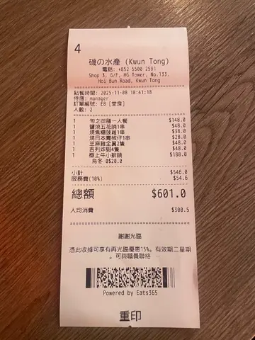 观塘海滨向来多餐厅,今次选择左呢间日式餐厅特上晚市二人前蟹籽沙律🥗沙律新鲜爽脆,捞上粒粒蟹籽食,有涨爆口感,作为开胃菜一流特选刺身拼盘三文鱼:肉质细嫩肥美赤海虾:虾肉肉质弹牙,虾头仲有甘甜的虾膏味带子:肉质肥厚,富有弹性,味道鲜甜特上寿司拼盘个人认为最中意海鳗sushi,肉质细致鲜甜而且米🍚饭粒粒分明盐烧白鳝白鳝烧得好脆皮,鱼肉肉质弹牙~盐烧五花腩五花腩juicy,咬落去有爆汁效果免治鸡肉软骨棒将蛋黄拌匀,再蘸上免治鸡肉🍗棒一起吃口感更软滑creamy,非常夹~焦糖菠萝烧成微微的焦香,吃下去很juicy香甜极上牛小排锅牛小排吃下去很嫩,肉🥩味浓郁~锅底仲放上豆腐、娃娃菜等配菜中和一下口腔的肥腻感乌冬每条乌冬都好弹牙,吃下去好顺滑,尤其暖胃300ml Sake女城王sake,带有果香,平衡了辛口的风味,使口感更显丰富。…查看更多