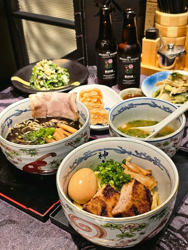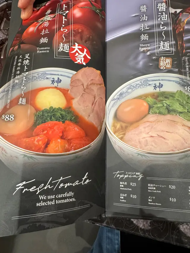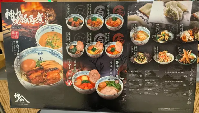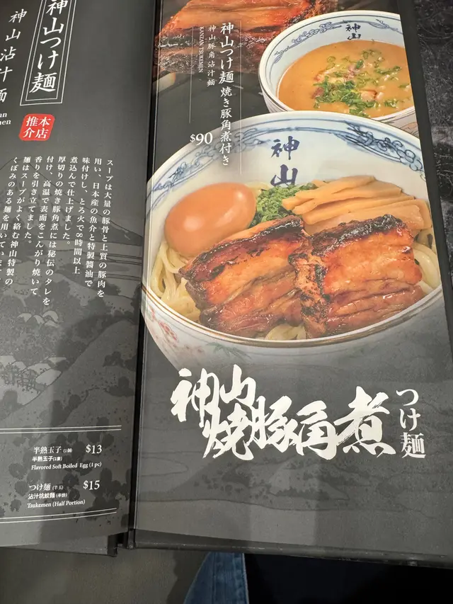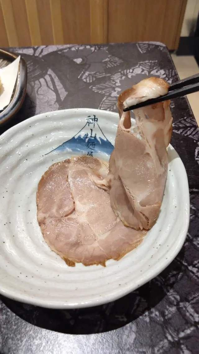 神山麵屋係合和商場2期6樓,係麵屋武藏分支品牌。餐具都會印左麵屋武藏嘅名,店舖面積細,台同台間距離肥少少都會碰到人。入座坐底後,職員連水都唔記得咗拎俾我地。嗌左白豚角拉麵同白叉燒拉麵,跟餐免費有汽水/冷泡焙茶。豚角就有3舊,叉燒兩大片,配一隻蛋同荀,麵同餸嘅份量唔多,男士食完都未必夠飽。拉麵來到時夠熱嘅,白湯夠咸,但味道沒咩特別。拉面軟硬剛好,豚角肥瘦分明,但第一啖食落時有一陣腥味,沒豬味。叉燒食落有d似火腿片咁,蛋都係普通熟蛋,荀食落都爽口。計埋加一都差唔多200。店員送左張coupon話係隔離間東京食堂買咖啡飲用。以食物質素及環境黎講,性價比一般。…查看更多