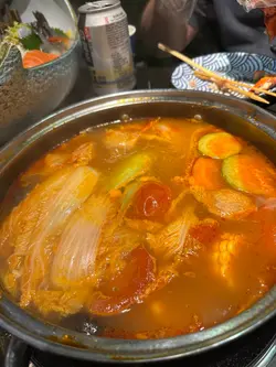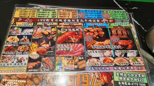 🍲 避雨好去处:本来谂住食普通放题,点知呢间有火锅+刺身+烧烤,仲可以有好多汤底拣~酸菜鱼汤底,鱼片够滑,汤底够味,唔使加钱转款,几抵! 🍣 刺身选择多: - 上枱时喷晒烟咁效果,几有气氛。三文鱼、螺片、赤虾都好新鲜,虾都有三款,仲有海胆军舰,细细见唔会太饱味道唔错。 - 麻辣小龙虾几入味,辣度适中,食得过瘾。 🦪 火锅海鲜质素几OK: - 海鲜拼盘有蚝、松叶蟹脚、鲍鱼,蚝够饱满,蟹脚算鲜甜,整体合格。 - 雪柜仲有大量火锅配料:牛肉、丸类、蔬菜,款式算多,唔会拣唔落手。 🍢 烧烤几好食: - **烧菠萝**系放题必食!表面微焦,咬落多汁,解腻一流。 - 牛舌、虾同鳝件烧得刚好,调味适中,又唔会太干。 🍨 甜品饮品任拣: - 饮品有汽水、茶、果汁,选择够晒多。 - 甜品有布甸、啫喱,门口个雪柜仲有好多款雪条、雪糕,临走拎支朱古力雪糕食,大满足。 💬 总结:价钱合理,食物种类多,刺身、火锅、烧烤三样都有,适合一班人聚餐。下次落雨或者会再嚟! 唔同时段仲有唔同优惠,钟意食多啲嘅可以加钱,丰俭由人!📌小贴士:晚市多人,最好订位。 …查看更多