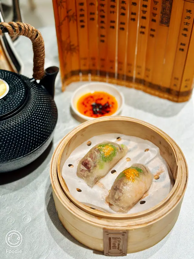 片皮鸭就食得多,黑松露版本真系第一次🤣餐厅招牌菜竟然系黑松露玻璃烧鹅🤯 估唔到又几好食!新出嘅黑松露片皮鸭做紧接近半价优惠,我哋食嘅四人套餐,而家都做紧限时72折,几抵食的✨❝ 黑松露玻璃烧鹅烧鹅皮脆肉嫩,黑松露幽香渗入肉质,带来浓郁而高雅嘅层次感,令人回味无穷✨❝ 黑松露片皮鸭全港首创!用黑松露酱风干腌制足足24个钟,与肥美鸭肉完美融合,奢华滋味一试难忘🤤❝ 三小碟(溏心皮蛋、炸豆腐、香汁鸭舌)溏心皮蛋蛋黄溏心流动,入口丝滑浓香,将传统小菜嘅极致演绎!炸豆腐金黄诱人,外脆内嫩,轻咬即释放豆香,配上微咸酱汁,简单食材化身令人满足嘅小食😋香汁鸭舌味道浓郁且带甜,简单却充满风味嘅经典小菜✨❝ 伊比利亚叉烧皇顶级伊比利亚黑毛猪肉制成,叉烧肥瘦均衡,入口软嫩多汁,蜜汁香甜与肉香交织,堪称叉烧界皇者👑❝ 港式特浓鸡汤翅汤底鲜甜醇厚,翅软滑弹牙,暖心又滋补☺️ 不过就略嫌翅嘅份量唔够多🫶🏻❝ 怀旧虾多士用只手打虾膏,炸至金黄香脆,复古风味勾起满满怀旧情怀,令人一试爱上😍❝ 鲜鱼露柠檬蒸老虎斑老虎斑肉质细嫩,柠檬清香渗透鱼身,蒸煮保留鲜甜原味,入口滑嫩,清新酸香令人胃口大开🍋❝ 15年新会陈皮红豆沙陈皮香气独特,红豆沙浓稠细滑,甜而不腻,完美收结一餐甜美体验🍵…查看更多