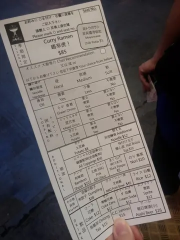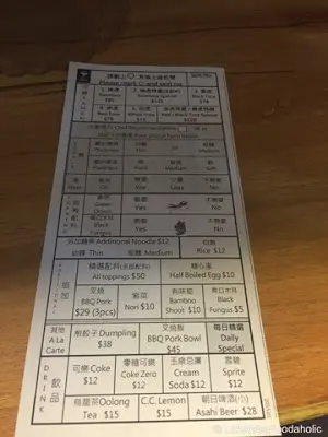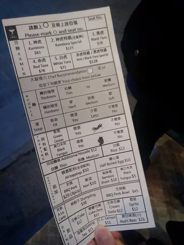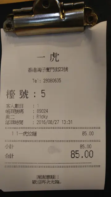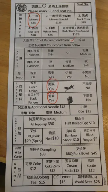 这天来到汕头街时间大约是1:30pm, 没想到炎热的天气下, 门外只有5,6人在排队. 等候了一会后由于我是1人, 马上便安排到一个座位了.是日有个柠檬拉面, 但太新潮了, 怕自己接受不了, 还是点回最基本的一虎拉面, 面种硬度一概由厨师发办.芽菜辣辣的很开胃, 红姜, 腌菜于吃至中段时, 加进汤底味道会有变化, 不错.枱面有冰水供客人自行添饮. 久违的神虎拉面, 尝过一口带猪背脂的汤后便尝一口这个糖心蛋, 蛋本身有浸过酱汁味道适中, 蛋的半熟程度相片已清楚说明.除糖心蛋外, 配料有葱, 木耳丝, 3块义烧. 面质是中细面, 弹性不错. 挂汤能力颇高.义烧肥瘦适中, 肉即香且嫩. 木耳丝爽口. 吃时沾点义烧上的辣酱味道又有不同, 相当不错.汤底加了猪背脂, 这层油相信不是人人喜爱, 但个人则颇为欣赏. 汤底的浓度个人认为是中高左右, 浓度虽高但不滞, 估计有加入少许鱼介汤底作平衢.埋单的价格没有加一, $85是香港日本拉面的中位数, 以味道材料来说算是抵食.翻食指数: 80分.(此指数平衡店舖交通, 味道, 环境, 价格... 等等, 个人作出的评价.)…Read More