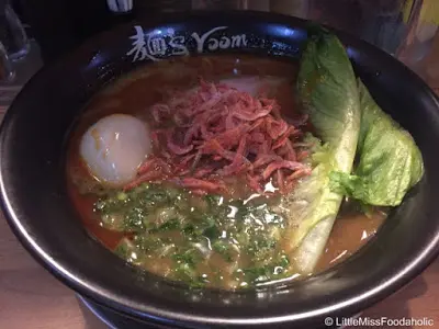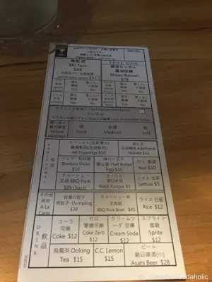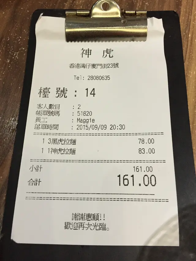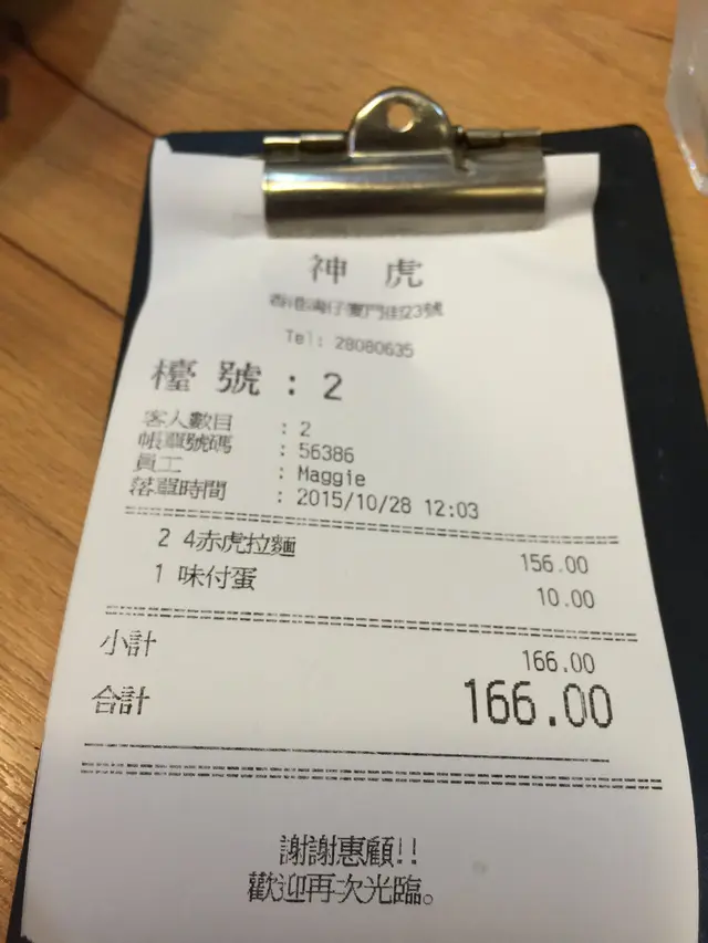 這天來到汕頭街時間大約是1:30pm, 沒想到炎熱的天氣下, 門外只有5,6人在排隊. 等候了一會後由於我是1人, 馬上便安排到一個座位了.是日有個檸檬拉麵, 但太新潮了, 怕自己接受不了, 還是點回最基本的一虎拉麵, 麵種硬度一概由廚師發辦.芽菜辣辣的很開胃, 紅薑, 醃菜於吃至中段時, 加進湯底味道會有變化, 不錯.枱面有冰水供客人自行添飲. 久違的神虎拉麵, 嚐過一口帶豬背脂的湯後便嚐一口這個糖心蛋, 蛋本身有浸過醬汁味道適中, 蛋的半熟程度相片已清楚說明.除糖心蛋外, 配料有蔥, 木耳絲, 3塊义燒. 面質是中細麵, 彈性不錯. 掛湯能力頗高.义燒肥瘦適中, 肉即香且嫩. 木耳絲爽口. 吃時沾點义燒上的辣醬味道又有不同, 相當不錯.湯底加了豬背脂, 這層油相信不是人人喜愛, 但個人則頗為欣賞. 湯底的濃度個人認為是中高左右, 濃度雖高但不滯, 估計有加入少許魚介湯底作平衢.埋單的價格沒有加一, $85是香港日本拉麵的中位數, 以味道材料來說算是抵食.翻食指數: 80分.(此指數平衡店舖交通, 味道, 環境, 價格... 等等, 個人作出的評價.)…查看更多