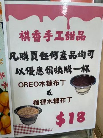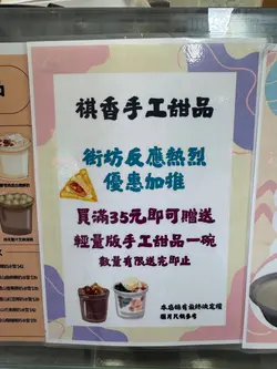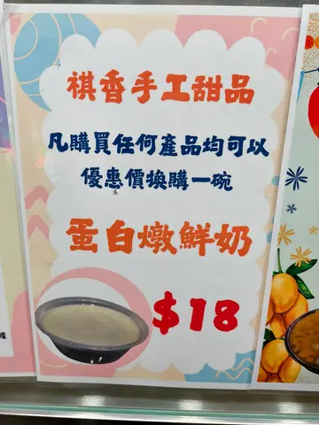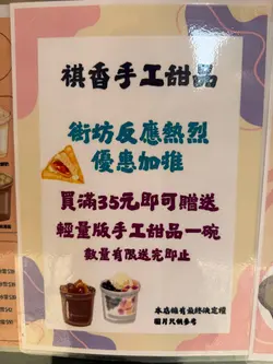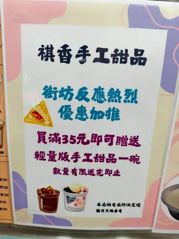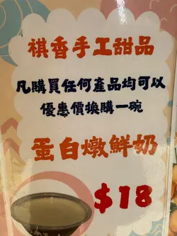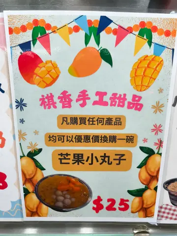 祺香手工甜品位于红磡怀旧鸡蛋仔隔篱,餐牌款式多样化,有中式甜品、自家制绿茶冻、鲜奶麻糬、蛋白炖鲜奶、即叫即制可丽饼、椰奶冰雪刨冰等等,非常多选择😍店员姐姐本身推介小妹食招牌纯椰奶冰雪刨冰,祺香的冰雪刨冰系用椰奶整并非用水刨再落酱,所以比较易溶,听来都非常吸引,只不过刨冰要在5分钟内食完😧因为小妹仲想买返屋企同老公分享,唯有留番下次再嚟先食🤭祺香的可丽饼因为系即叫即整,需时约六至八分钟,唔想等咁耐,可以提早打电话嚟落单。如果唔介意等待,仲可以在店舖前欣赏店员手工制作,过程都非常疗愈🤭🤭!小妹拣咗《鲜奶麻糬芒果榛子酱可丽饼》,小妹就系企喺度欣赏制作过程,食落芒果肉超甜、可丽饼皮薄皮脆边,仲有新鲜软熟的手工鲜奶麻糬🤩,再有手打忌廉及榛子酱,食完争啲食唔落晚饭,因为份量都好十足😂😂除咗美味的可丽饼外,呢度有个好特别嘅甜品吸引咗小妹,就系佢哋嘅自家制绿茶冻啦💚出边嘅甜品店比较少有,决定买咗比较受欢迎的《绿茶冻五式(椰汁底)》,五式系指绿茶冻、仙草、芋圆、小丸子蜜红豆、原味晶球,卖相非常靓,食落绿茶冻非常香浓,成碗甜品唔会太甜,连小妹的老爷奶奶都话啱食😏原来而家仲有优惠,只要每买满$35就会送一碗轻量版甜品,每日唔同!而且买任何甜品,都可以优惠价换购指定甜品一碗,数量不限,小朋友先至做选择,下次再嚟买要换多几碗同家人一齐食先得😍😍…查看更多