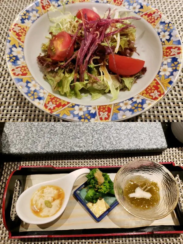第一次食鐵板燒係秋田,一向鐘意D靜靜地坐得舒服又可以慢慢享受美食既餐廳,友人特意為我揀左呢間位於荃灣既鐵板燒,充滿期待咁上去,我唔係荃灣人覺得好隔涉,個商場唔起眼,唔OPENRICE真係唔知有間鐵板燒係度今次都係食二人前餐,唔記得左邊個SET前菜-怪怪的,我同友人都麻麻地,食左少少無吃LU沙律菜刺身好鮮甜