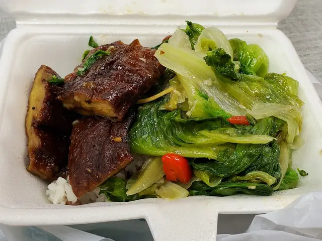 中環商業區想平平地食個飯真係唔容易,所以記得SAVE低這間佛心價素食三餸飯,每日有十幾個菜式任揀,仲有老火湯飲。想食1至4個餸都可以,澱粉可以配白飯、紅飯、炒米粉或炒麵,味道唔算差對得住個價錢囉。中環街市對面的一條橫巷之內,這天中午前來到,還未是繁忙時間,不過都已經有一堆人在買。入面有座位可以坐,不過買外賣的人很多。外賣價HK$31-42,可以揀淨餸,亦可以揀要唔要湯。每日有十幾道素菜可以揀,落單時講號碼就可以了。四淨餸不配湯 HK$42這天買外賣回公司吃,路途有點遠,為免麻煩就沒要湯了。四個餸用沒有分格的發泡膠盒裝,有汁無汁都溝埋晒,基本上已經分唔開。蔬菜煮得偏軟爛,口感略油膩,不過呢個價錢在香港係食咁上下的食物,在中環上班要慳錢可以記低。查看更多