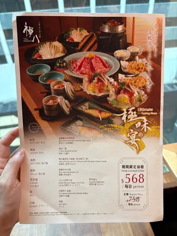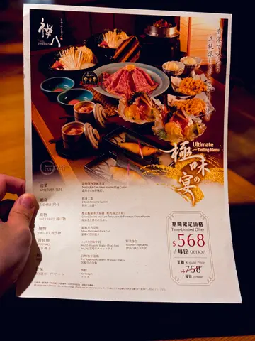今次同朋友去咗尖沙咀禅八日本料理,试咗佢哋全新《极味之宴•寿喜烧》套餐,期间限定价$568/位(正价$758/位),套餐要两位起先可以叫👫岩哂情侣或姐同姐妹黎,一入到去,环境好舒服,服务员都好有礼貌😊首先上枱嘅系海胆茶碗蒸蛋,啖啖滑溜,海胆味道鲜甜,蛋香浓郁,食落好有层次感🥚。之后嘅极上刺二点,鱼生新鲜到不得了,入口即溶,完全冇腥味🐟樱花虾粟米天妇罗配帕马森芝士粉,外脆内嫩,粟米甜甜地,樱花虾香味突出,加埋芝士粉真系好夹🧀。银鳕鱼西京烧烧得啱啱好,鱼肉嫩滑,味噌味唔会太抢,食完都唔觉腻🐠主角寿喜烧嚟啦!用咗4届荣获「日本一」殊荣嘅特上宫崎和牛,A4牛肩肉油花分布靓到爆,落锅一煮即熟,肉质超嫩滑,牛味浓郁,真系一试难忘🥩。野菜盛合都好新鲜,配埋寿喜烧汁一齐食,味道更丰富🥬宫崎和牛釜饭都唔可以错过,饭粒吸晒牛肉精华,香气十足,食到最后一啖都唔舍得停🍚。最后有雪糕做甜品,清新解腻,完美收尾🍦整体嚟讲,无论同朋友定情侣嚟都好适合👍期间限定价钱仲抵食,钟意食和牛嘅朋友一定要试下!…查看更多