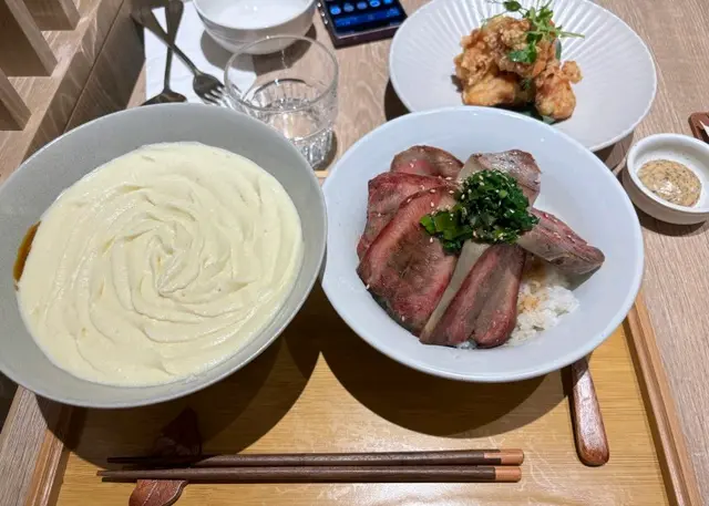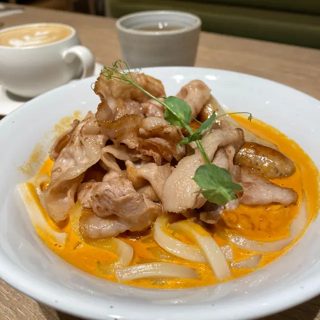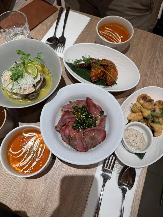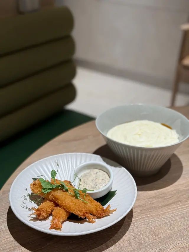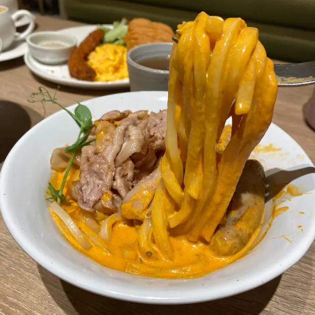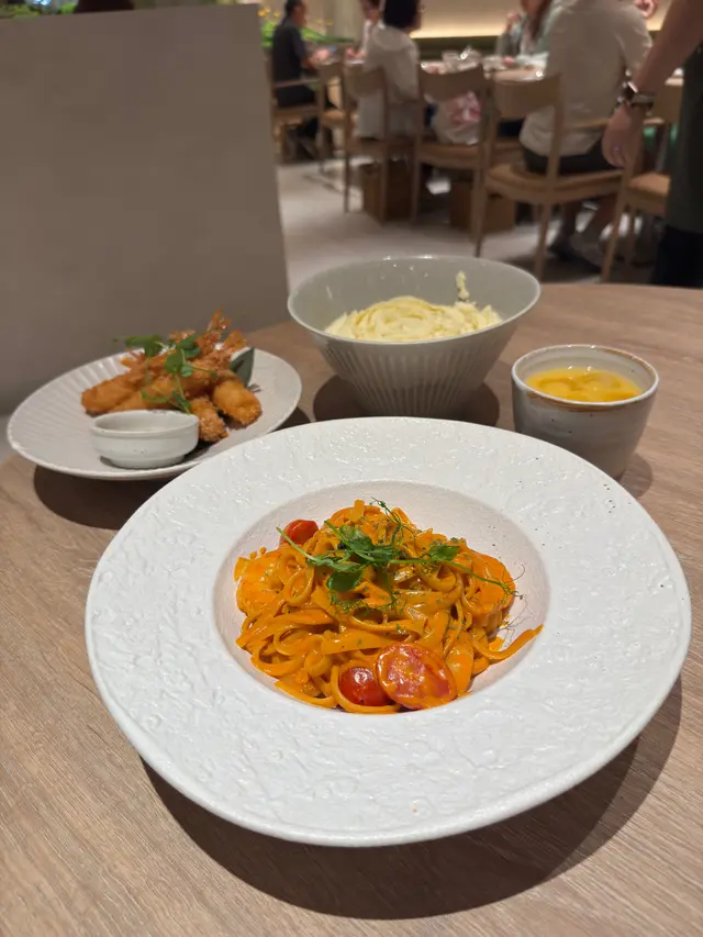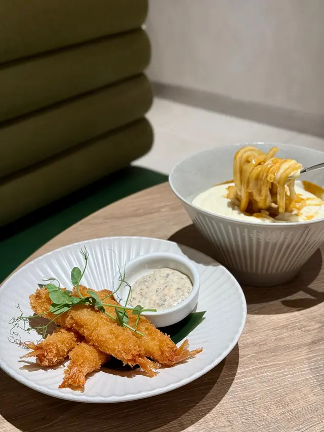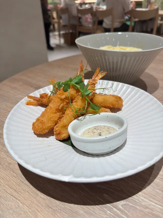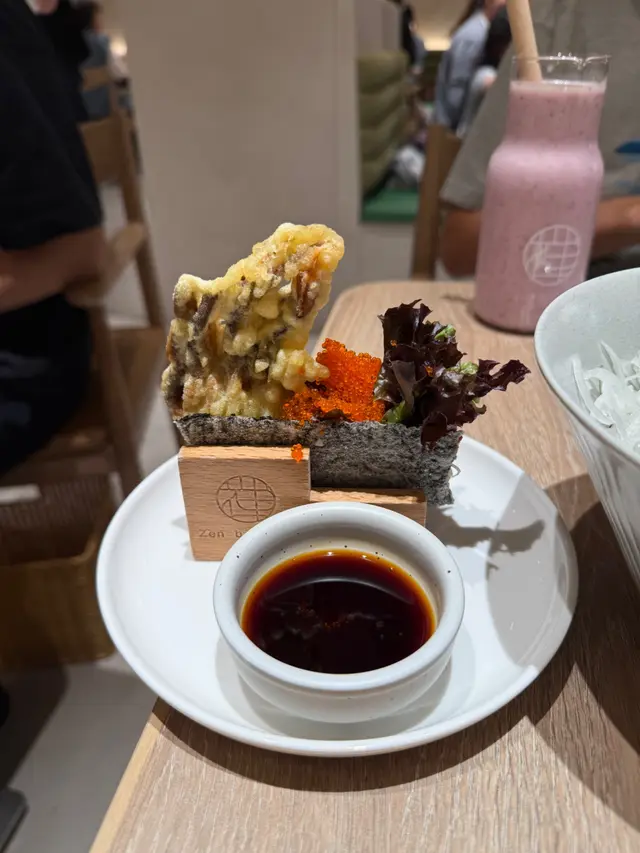 今日過咗去馬鞍山搵朋友聚聚,發現原來Zen開到嚟Mostown!雖然係新分店,但人氣依然旺到爆,我哋下晝三點到都要等十幾分鐘先入座。我哋叫咗個「下午茶大盛定食蕃茄烏冬」做基底,$48就有碗自家製蕃茄烏冬,湯底鮮茄打蓉,濃郁得嚟好鮮甜,烏冬咬落好彈牙。再加咗幾款配料:蒲燒鰻魚半條燒得啱啱好,甜甜哋嘅鰻魚汁超惹味;南蠻炸雞外脆內嫩,仲有啲酸酸哢哢嘅醬汁點綴;吉列大蝦炸粉薄脆,蝦肉爽口;再加份野菜平衡下,成個定食豐富到呢!特別要提佢加少少錢有杯勁高質特飲,我試咗牛油果士多啤梨乳酪奶昔,口感順滑,果味天然。朋友嗰杯芒果紅桑子乳酪奶昔,果味更加濃郁,真係抵讚!蟹鉗奶油忌廉扁蔥粉真係有驚喜!奶油忌廉汁超濃郁,每條扁蔥粉都掛滿汁,食落Creamy得嚟又唔會膩,仲有淡淡蔥香平衡返,口感滑溜溜,有少少邪惡,但係成碟食晒。開心果梳乎厘絕對係必點!即叫即製,上枱仲係熱辣辣,梳乎厘空氣感十足,入口即化,開心果味香濃自然,面頭灑咗啲開心果碎增加口感,甜度控制得啱啱好,食完滿足感爆棚!埋單兩個人連加一都係合理價,呢個質素同份量,真係抵到爛!以後馬鞍山又多個高質下午茶選擇啦~…查看更多