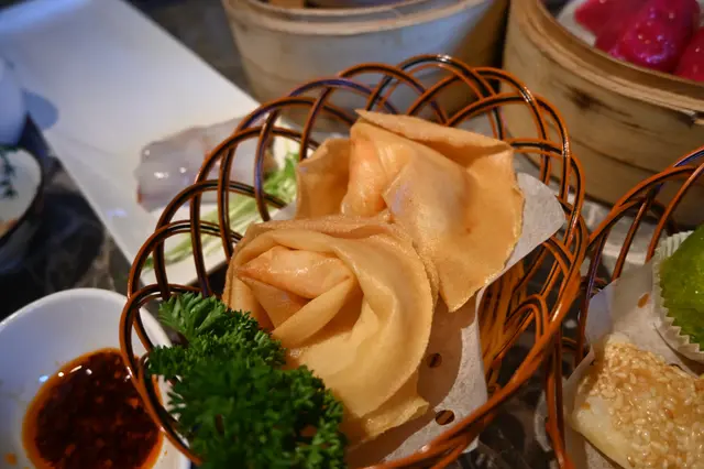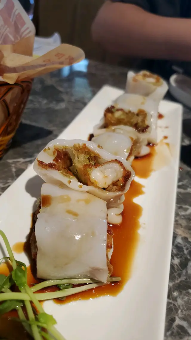 知道好多同事住呢區,搵咗間粵川菜館食點心。素聞係香港籃球運動員劉子禮開設的精品粵菜館,有米芝蓮星級餐廳的爵哥擔任總廚。呢道銀芽肉絲飛天菜麵街知巷聞,訂位嗰時已經叫埋,仲註明要跟劉老闆合照。當然理想歸理想,見唔到劉老闆跌晒穫就梗,不過嚟品嚐到精美點心都好。飛天麵是新加坡首創的街頭特色美食,老闆引入飛天麵的手藝,凌空的筷子及麵底必然係打卡位。環境舒適獨立房入面掛住一個特大嘅「禮」字,應該仲有好多嘢可以試嘅,第一次寫住咁多先
