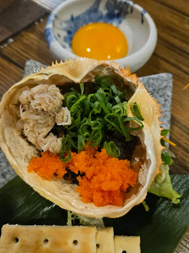 🦖太子居酒屋 高質但價錢貴✨原來太子花園街成條街好多野食😋琴日揀咗間日式居酒屋,店舖細細主打手作串燒!串燒即叫即燒,仲有好多款日式料理小食,岩曬收工飲返杯☺️✨紫菜芥末八爪魚($58)八爪魚口感滑溜彈牙,芥末好夾好攻鼻👍🏻✨前菜漬物三點盛($88)三點盛包括:柚子蘿蔔漬、蒜頭漬同牛蒡作為開胃前菜,我最中意清新又酸甜既蘿蔔,好味~✨松露半熟牛肉他他($118)半熟牛肉肉質鮮嫩,牛味濃份量好夠配埋黑松露醬汁同新鮮沙律菜,加左沙律醋,開胃‼️✨高湯玉子燒($78)綿密柔軟,好有蛋味~✨月見醬唐揚飯團($48)炸到外層似飯焦既飯團,照燒汁調味配搭蛋黃,唔錯✨黑松露鵝肝多士($88)多士酥脆,鵝肝軟綿綿好香濃,同黑松露好夾✨蟹肉蟹膏甲羅燒 ($138)賣相100分,而且份量好多🥰最中意呢個👍🏻滿滿蟹膏、蟹肉同蟹籽,真係超飽肚~✨串燒雞頸肉($38)👍🏻:肉質嫩滑雞軟骨($32):雞軟骨有啲太乾醬汁燒豚肉串($48):豬肉肥瘦適中,特製醬汁好惹味鹿兒島一口牛($58):一口牛鮮嫩多汁查看更多