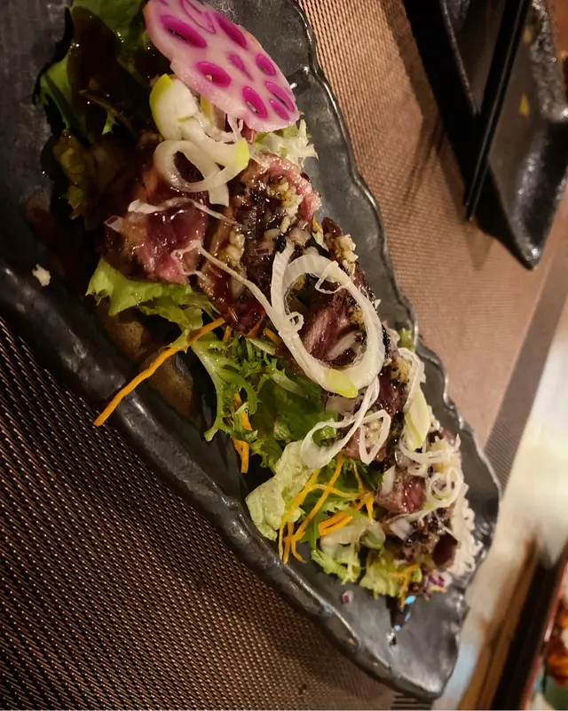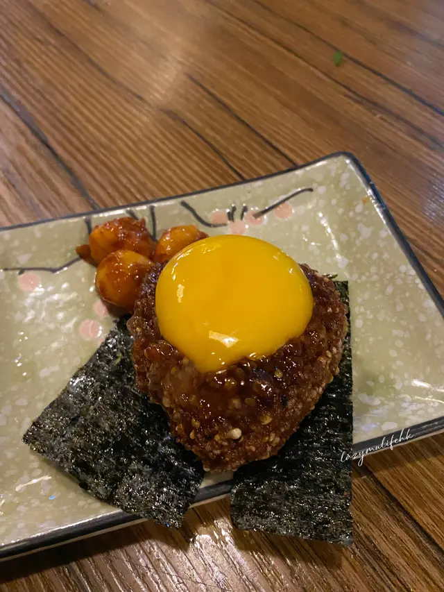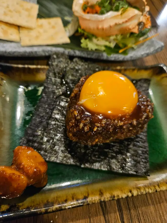 餐廳環境裝修充滿日本風情🎎掛咗唔少日式燈籠、小擺設,營造日式居酒屋氣氛🪭秘制半熟鰹魚他他賣相相當吸引,半熟鰹魚肉質鮮嫩,外邊又有炙燒味道,同埋蔥蒜一齊食,更加帶出魚嘅鮮味❤️月見醬唐揚飯糰🍙本身對燒飯糰冇特別鍾意🫢 因為好多時都係冇餡,食落冇咩味咁🫣 不過呢個燒飯糰就好有驚喜👀 充滿焦香又唔會太燶,面頭打咗隻生雞蛋,同月見醬撈埋一齊食好夾,味道層次極豐富~免治雞肉捧配醬油蛋🌟雞肉棒充滿肉汁,配埋醬油蛋醬汁,如果用呢個汁用嚟送飯,一定係絕配查看更多