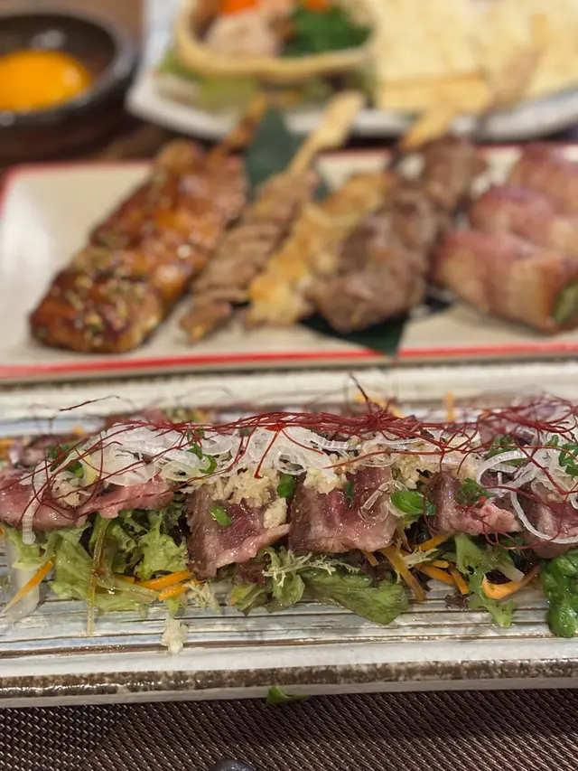 🐙紫菜芥末八爪魚八爪魚口感彈牙,加上芥末,給人一種獨特的清爽感。🐄松露半熟牛肉他他牛肉他他非常嫩滑,搭配上松露的香氣,提升了整體的風味。🍢煙腩肉秋葵串煙燻腩肉的濃郁和秋葵的脆嫩很配👍🏻🍢醬汁燒豚肉串🍢 鹿兒島一口牛牛肉非常嫩滑🍢 雞軟骨雞軟骨香脆可口🍢 雞頸肉串燒普遍不會過鹹,更食出食物原味👏🏻🍳高湯玉子燒玉子燒口感非常柔軟,非常熱,帶有濃郁的高湯香味,每一口都能感受到蛋的滑嫩和高湯的鮮美🥰🦀蟹肉蟹煮甲羅燒蟹肉的甜美與甲羅燒的香氣相得益彰,配上生蛋更濃郁☺️🍞黑松露鵝肝多士鵝肝非常細膩,搭配上黑松露的香氣和脆脆的多士,口感層次豐富,非常美味。🍘月見醬唐揚飯團飯團外脆內軟,搭配上濃郁的生蛋更濃郁🍳📍 禮 (太子)太子花園街213號地舖查看更多