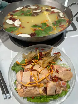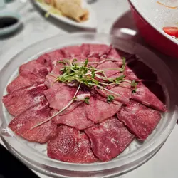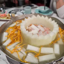 嚟咗尖沙咀呢间海洋火锅店打边炉,佢哋有鱼缸养住d海鲜,每日都有唔同嘅新鲜海鲜应市。我哋两个人见佢个双人火锅套餐价钱都几合理,有齐海鲜、肉类同蔬菜配料,$698两位已经包埋茶位同酱料。汤底有好多款式选择,仲可以拣鸳鸯锅。我哋就加咗$168升级咗做龙虾锅。龙虾锅用原只龙虾配埋粟米、洋葱等新鲜蔬菜由店员即场落镬炒香,加埋白兰地点火爆炒,营造出吸睛嘅火焰效果。最后再倒入虾汤一齐煮,汤头饮落鲜甜,充满龙虾嘅鲜香。龙虾肉爽弹鲜甜。套餐嘅海鲜可以喺4款入面拣1款,我哋就拣咗元贝,都几大只,口感弹牙水嫩。除咗元贝仲可以拣鲍鱼、海虾或者花甲皇。肉类方面猪牛羊鸡都有,可以拣两款,我哋作为牛魔王就拣咗食匙仁同吊笼。匙仁系牛肩胛骨上方嘅部位,因为平时比较少郁动,肉质软嫩,充满牛肉嘅鲜甜。吊笼就系牛脊背上嘅肉,肉味浓d,油份亦都比较重。火锅配料拣咗手打牛丸,一整盘份量都唔少,牛丸食落几弹牙,系真系有手打嘅感觉。蔬菜就要咗油麦菜,新鲜爽脆。最后嘅主食拣咗稻庭乌冬,幼滑嘅乌冬挂到龙虾汤汁,鲜味十足。。。禾玺牛肉海鲜火锅 (尖沙咀)尖沙咀赫德道17号海信大厦地舖及1楼。。…查看更多