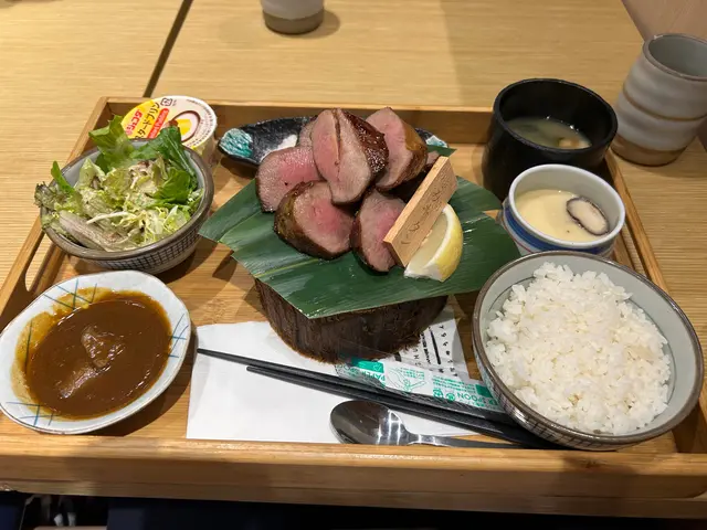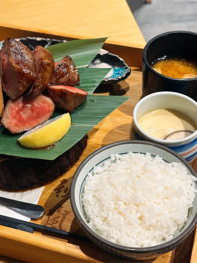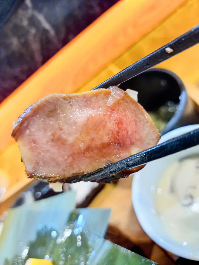 Often seeing ppl recommending their ox tongue on social media, my friend and I deliberately visited this Japanese resto in Quarry Bay. .We both ordered the Thick Cut Beef Tongue Set, which included Salad, Miso Soup, Japanese Steamed Egg Custard, Rice, Grilled Beef Tongue, Beef Tongue with Curry and Dessert. The Japanese Steamed Egg Custard was very smooth with a strong egg aroma. It was a bit lukewarm, but the taste was nice. The Grilled Beef Tongue was truly extremely thick and came with a generous amount, at least 8 pieces! With an appealing pink centre, the tongue had slightly burnt crust and a succulent, tender interior. Apart from lemon juice, I could also choose to dip it in pink rock salt, teriyaki sauce, or scallion oil to enhance its savoury. Pairing the beef tongue with the round and fulfilling Japanese Pearl Rice made the whole dish appetising. The Dessert of the day was Peach Jelly, which was quite refreshing and helped decrease some of the greasiness of the meal..The resto is very popular, and we had to wait for while to be seated even though we actually booked in advance. It is quite crowded, and almost everyone ordered their signature beef tongue🤣.…查看更多