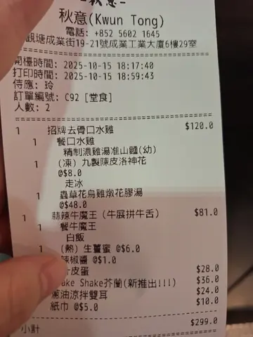 秋意去骨豉油鸡 转净胸去骨鸡胸肉经过精心处理,肉质鲜嫩多汁,咬下去时口感滑顺,令人满意。豉油的咸香味道十分入味,增添了风味,让每一口都能感受到酱汁的浓郁。豉油的味道与鸡肉的原味相得益彰,让整道菜的风味更加和谐。配虾虾冷拌面面条煮得恰到好处,口感滑顺,带有弹性,让人一口接一口,十分过瘾;味道醇厚,略带咸香,与面条的口感相得益彰,让人感到满足。热饮 生姜蜜生姜的辛辣味道十分明显,带来了温暖的感觉。蜜糖的甜味平衡了生姜的辛辣,让整体口感更加柔和,令人感到舒心。酒酿溏心蛋经过精心煮制,口感柔滑,溏心蛋黄的质地恰到好处,流心的口感让人惊喜,带有浓郁的风味。酒酿的香气为整道菜增添了独特的风味,甜中带有微微的酒香,让人感到温暖。Shake shake 芥兰芥兰的鲜绿色泽让人食欲大开,口感脆嫩,咬下去时十分爽口,保留了蔬菜的原汁原味。清蒸的做法让芥兰保持了自然的香气,清爽宜人,十分适合搭配重口味的酱汁。酱汁的味道浓郁,融合了香、咸、微辣的元素,为芥兰增添了额外的风味层次。…查看更多