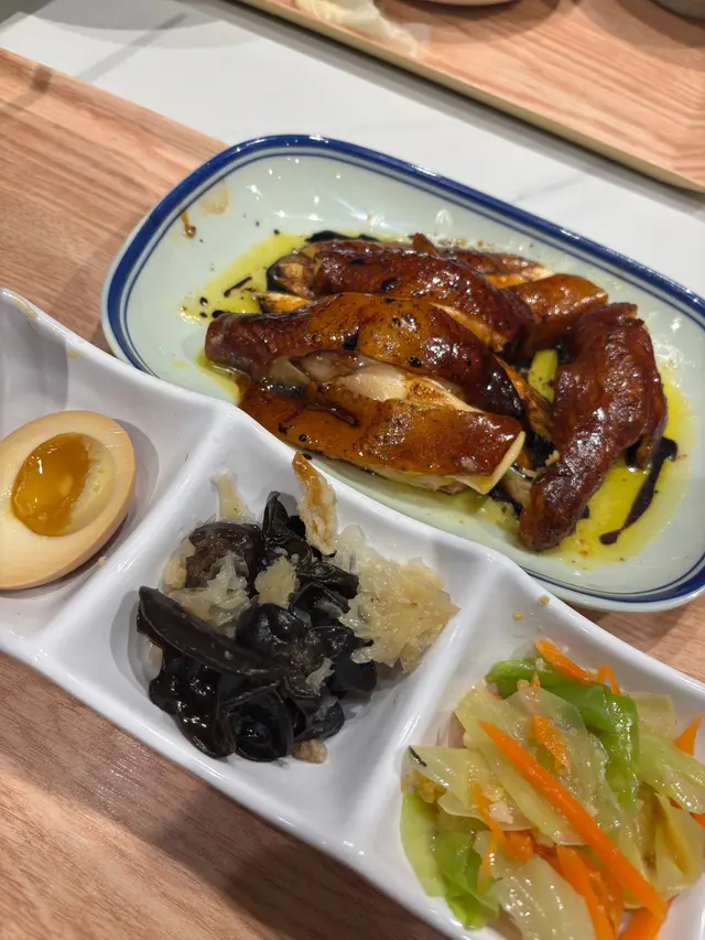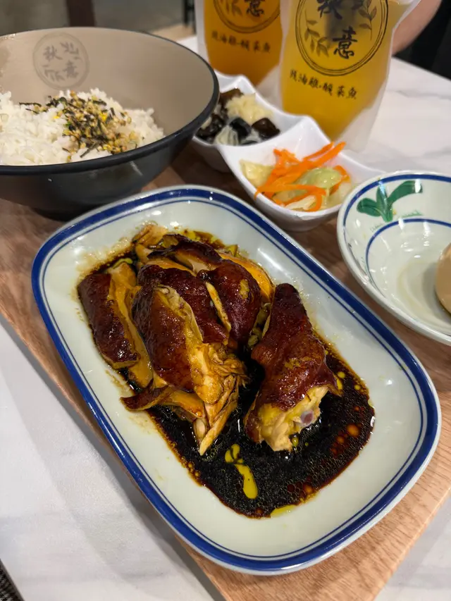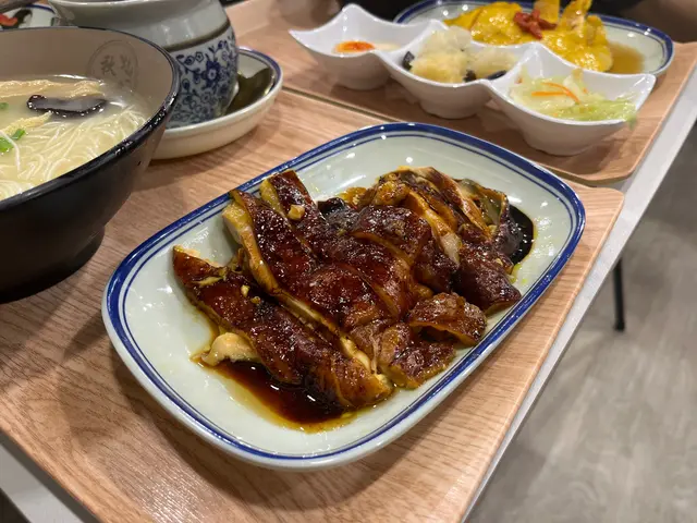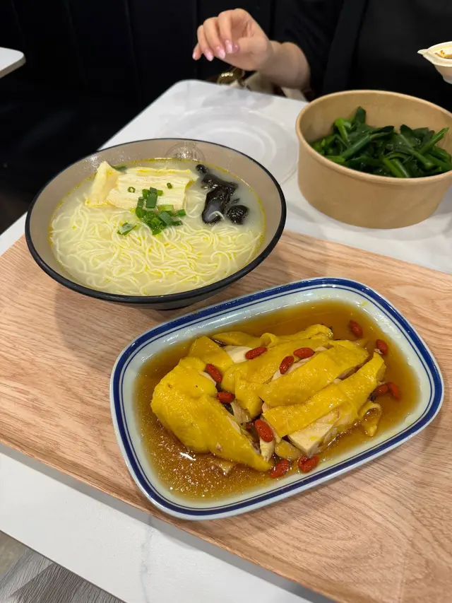 秋意去骨豉油雞 轉淨胸去骨雞胸肉經過精心處理,肉質鮮嫩多汁,咬下去時口感滑順,令人滿意。豉油的鹹香味道十分入味,增添了風味,讓每一口都能感受到醬汁的濃郁。豉油的味道與雞肉的原味相得益彰,讓整道菜的風味更加和諧。配蝦蝦冷拌麵麵條煮得恰到好處,口感滑順,帶有彈性,讓人一口接一口,十分過癮;味道醇厚,略帶鹹香,與麵條的口感相得益彰,讓人感到滿足。熱飲 生薑蜜生薑的辛辣味道十分明顯,帶來了溫暖的感覺。蜜糖的甜味平衡了生薑的辛辣,讓整體口感更加柔和,令人感到舒心。酒釀溏心蛋經過精心煮製,口感柔滑,溏心蛋黃的質地恰到好處,流心的口感讓人驚喜,帶有濃郁的風味。酒釀的香氣為整道菜增添了獨特的風味,甜中帶有微微的酒香,讓人感到溫暖。Shake shake 芥蘭芥蘭的鮮綠色澤讓人食慾大開,口感脆嫩,咬下去時十分爽口,保留了蔬菜的原汁原味。清蒸的做法讓芥蘭保持了自然的香氣,清爽宜人,十分適合搭配重口味的醬汁。醬汁的味道濃郁,融合了香、鹹、微辣的元素,為芥蘭增添了額外的風味層次。…查看更多