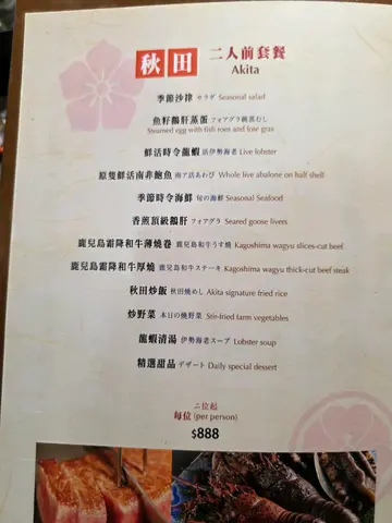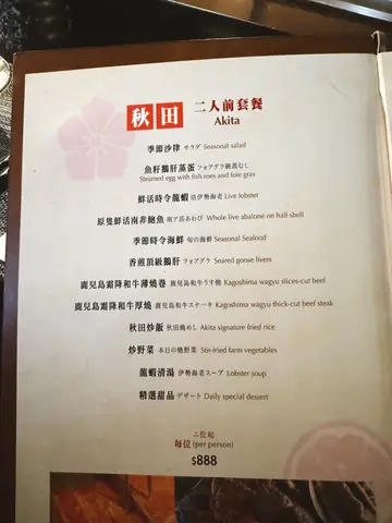 性价比不错嘅铁板烧🔥餐厅楼高3层 环境好宽阔庆祝生日厨师仲会系铁板写上祝福字句另外仲有画碟服务 好啱打卡呢❤️✨ 秋田二人前套餐 ($888/位)❀ 季节沙律 🥢水云沙律配鲍鱼片及青瓜味道酸爽 好开胃☺️❀ 鱼籽鹅肝蒸蛋 🥚入口滑溜充满蛋香 加埋鱼籽及鹅肝 增添层次感👅❀ 鲜活时令龙虾 🦞新鲜龙虾爽弹多汁以龙虾头制成浓郁酱汁仲有强劲火焰效果好正🔥❀ 原只鲜活南非鲍鱼 🥢大大只鲍鱼 口感好弹牙伴以忌廉海苔汁更加滋味👍🏻❀ 季节时令海鲜 🐚象拔蚌鲜甜爽口配埋蒜芯及芥末酱非常惹味😚❀ 香煎顶级鹅肝 🦆超大件鹅肝😍 表面煎至焦脆 咬开油香四溢菠萝及黑醋汁中和腻感食得好满足❤️❀ 鹿儿岛霜降和牛薄烧卷 🐮❀ 鹿儿岛霜降和牛厚烧 🐮可以一次过品尝和牛厚烧及薄烧✨厚烧肉质软嫩 油脂丰富 薄烧加入蒜片及葱花 更加香口🥰❀ 秋田炒饭 🍚樱花虾烟肉炒饭❀ 炒野菜 🥬|龙虾清汤 🥣❀ 精选甜品 🍨当晚系红豆铜锣烧配抹茶雪糕…查看更多