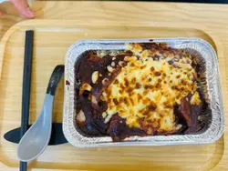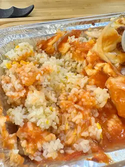 黑椒汁+猪颈肉+焗饭个黑椒汁唔辣,猪颈肉比较硬