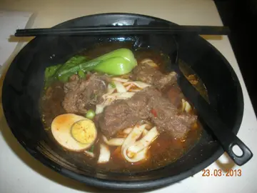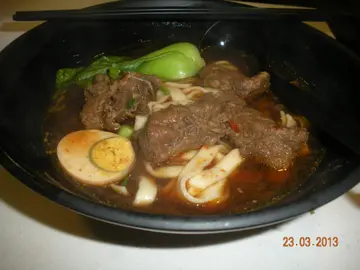 通常在下于茶记吃一碗牛肉面,甚少会在台湾牛肉面店吃一碗,直到在下与馋喂妹在一起的时候,才有机会进店一尝。一尝台湾牛肉面,已经是两三年前,之后却没有再尝,原因就是馋喂妹不太喜欢台湾菜吧。今天来到铜锣湾,也是要为实现排队已久的心水食店,进行清除在下的食店名单里的食台。第一站便是到程班长台湾牛肉面来,一尝台湾牛肉面。其实,在下早前已经到过九龙城的大婆牛肉面,今次只是转移阵地而言。经过一条狭窄的走廊,来到餐厅的尽头,刚好有一个单边双人坐位坐下,店子确实小而狭窄,但坐得尚算宽敞,而在下面对的却是水吧的另一面。看过餐牌,就点选了一客招牌红烧牛肉面,在下已经没有要求一杯饮品了。来了一碗牛肉面,碗是大了,但牛肉面未填满碗子。深色的汤底浸泡著牛肉面,已经好看得很了。舀一羹汤,程班长的汤底较大婆牛肉面的汤底为浓烈,牛肉也很腍,面条是采用了台湾阳春面,此面来得烟韧有咬口。在下于短时间内一口气尝过两碗牛肉面,各有千秋。当中如果汤底做得好的话,可以免却在店舖内喝饮品。…查看更多