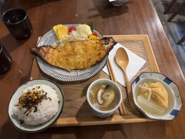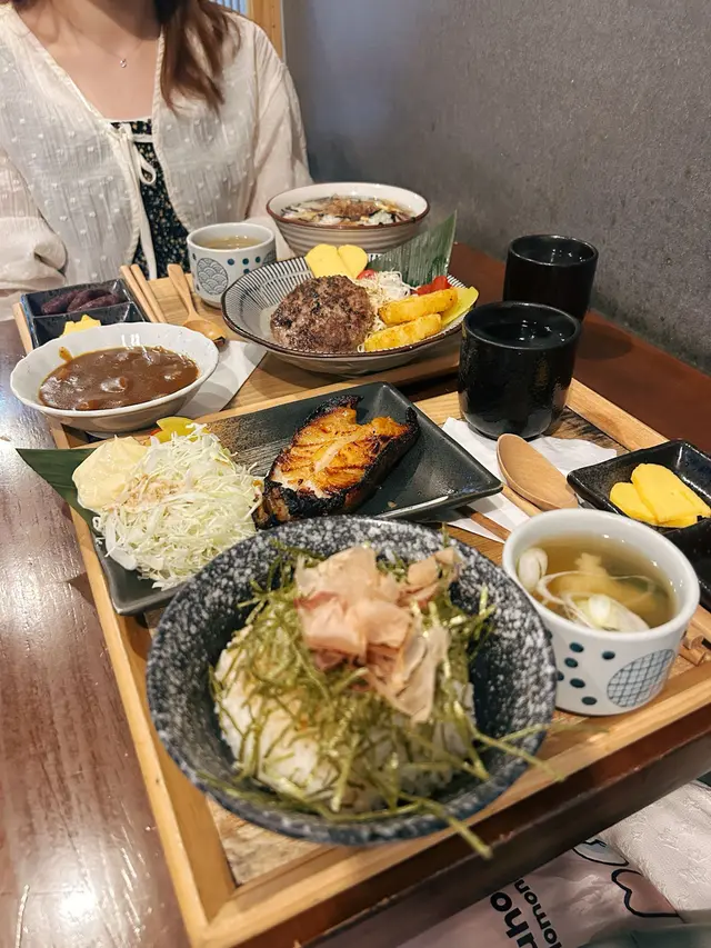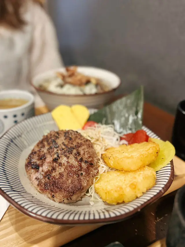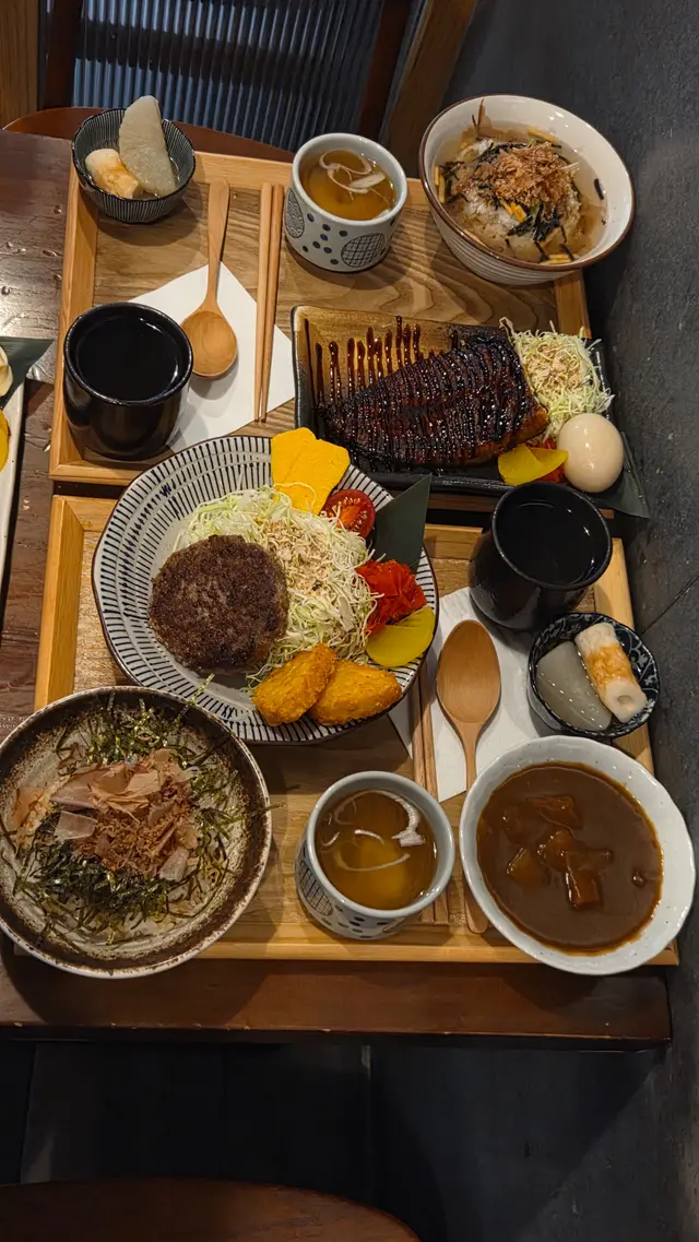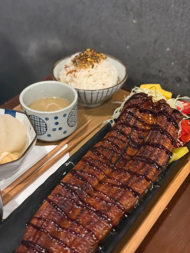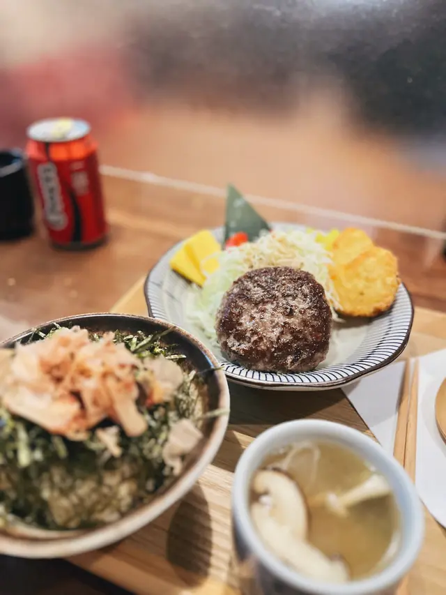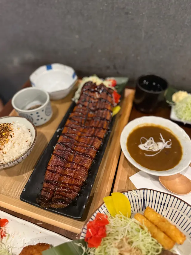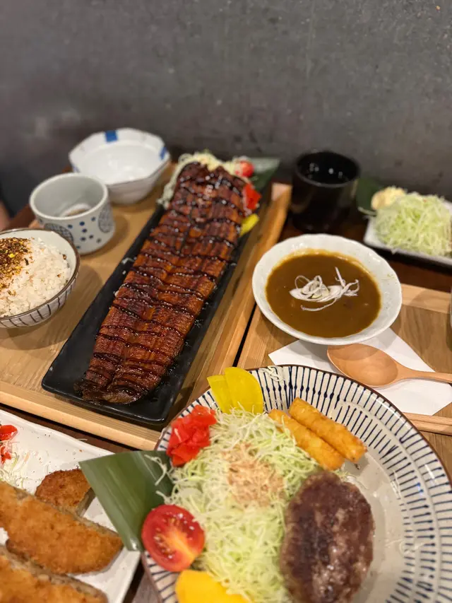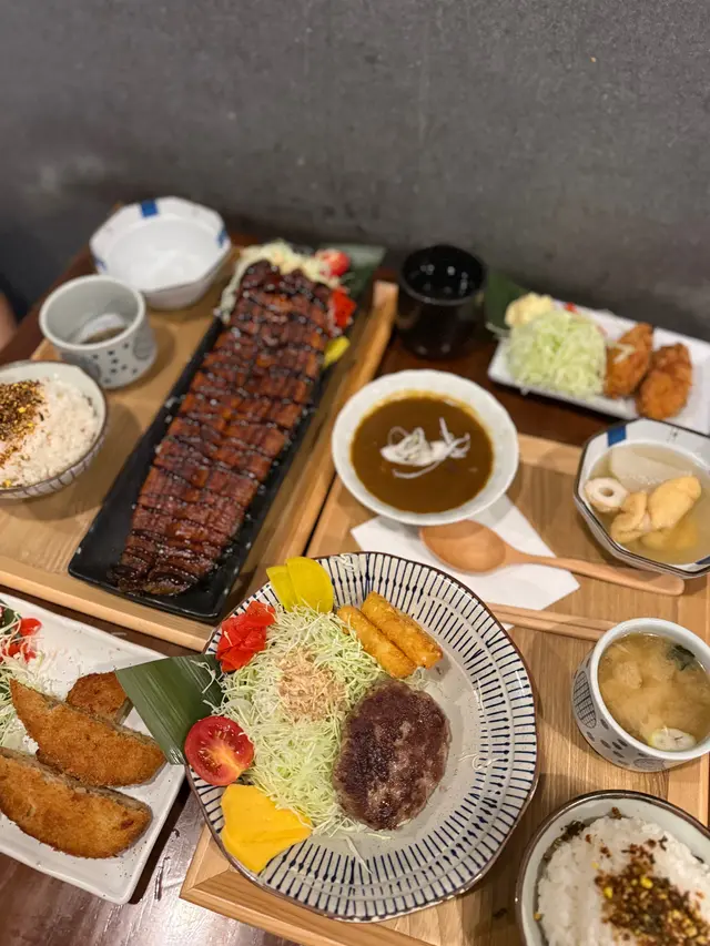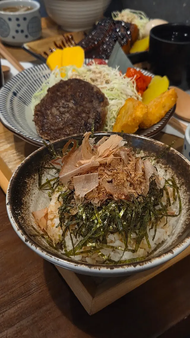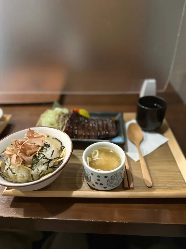 朗屏站附近有間日式小店,步行3分鐘就到達,主打日式定食,小店座位大約得14個。半開放式廚房,不覺有油煙味,推門入內被墻上一大幅漫畫角色嘅畫吸引住,當中有龍珠,海賊王,鬼滅等,d回憶返晒嚟🤪 午市定食均配:前菜,煎茶,味增湯,珍珠米。 可+$10轉茶漬飯/湯烏冬/特色貓飯。另可+$10追加自家制糖心蛋 🔸️貓飯有紫菜+木魚花+日本醬油+牛油,撈埋一起超級好食😍值得加$10轉🐱飯😋 🔸️茶漬飯有紫菜+木魚花+飯素再配上高湯味道清新好味😋 🔸️招牌蒲燒鰻魚定食($78 )大大條上枱夠晒大方,厚肉得嚟肉質軟嫩,蒲燒汁濃郁甜甜地送飯一流。另加糖心蛋,浸得剛好不會過濃味,流心口感一流。🔸️香煎和牛漢堡扒配咖哩汁定食($84)漢堡扒可選7成或全熟,我地選了7成,切開似8-9成熟了點,不過牛味香濃油脂充足,配上日式甜咖哩嘅很好送飯🤤 🔸️飛驒和牛可樂餅$58。炸得好出色,外面酥脆可口一d都唔覺油膩感,餡是綿滑薯蓉加香濃的飛驒牛肉非常好食😋 十分欣賞每道菜都有椰菜絲,食埋椰菜絲感覺上健康返少少😆整體食物質素及份量都很好,價錢合理無加一服務費,服務態度亦很好,值得推介朋友一起再來😋…查看更多