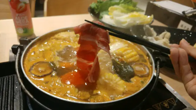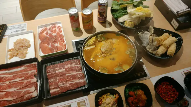 第一次黎呢間餐廳已經係接近兩年前,當時都幾鐘意,覺得性價比幾高,環境舒服,又有啲特別野(天婦羅DIY)。期間都黎過一、兩次,今日諗唔到食乜,又打下邊爐啦平日未夠8點,都幾多人架,證明都係有實力嘅,溫馨提示人多就最好訂位,夾啱時間經op訂枱仲有折(7點半前結帳離座/9點半後入座)。餐廳面積大,淺木色枱枱加埋啲插畫,幾有日本風味。一貫日式火鍋放題食法,套餐6款,分豚肉、美國進口牛、美國穀飼牛、安格斯牛小排、澳洲M6和牛同日本黑毛和牛,價錢分別係每位$158/168/208/258/298/368特級美國穀飼牛套餐包括穀飼牛、進口牛、美國豚肉、北海道雞片、羊肉、炸物、大量配料任食,飲品任飲,仲有啲雪糕雪條咁。【如果要食埋刺身,可以揀$258或以上嘅套餐】基本火鍋湯底有蕃茄、昆布、牛乳、豬骨、地獄、沙嗲、壽喜燒等,最近仲可以免費點冬蔭公毛蟹湯。當然佢地都有啲收費湯底,例如麻辣、美人鍋等。冬蔭公毛蟹湯拼壽喜燒湯底雙拼就要加$18,冬蔭公毛蟹湯都幾有趣,本身未試過咁泰式feel嘅邊爐。裡面有香茅、青檸,當然唔少得毛蟹一隻,細細隻,都有肉食。好快店員就已經送上幾款肉,值得一讚,呢度加單都好快手,食足120分鐘。有一份手切牛送嘅,又幾好食喎,牛肉入口滑,肥瘦啱啱好任食嘅美國殼飼牛質素都可以,以人頭$208黎講,都交足功課,牛肉入口唔柴,幾有彈性,食左兩碟都覺得可以加得過豚肉都唔差,肥瘦半半,薄薄一片,唔洗淥好耐;雞肉中規中矩啦。其他火鍋配料自取,前菜都有幾款,包括八爪魚、螺肉、中華沙律。丸類款式都幾多,我最鐘意芝士丸同麻糬(?)。蔬菜、菇菌同冬蔭公毛蟹湯底都幾夾。有秋葵都幾正,不過有兩條老有啲,有渣比較特別就係佢地有部天婦羅DIY機,將食材串起,自己沾啲炸粉,就可以做到炸物,ok架,好脆嘅,我最鐘意蝦飲品任飲。so far覺得呢間放題依然係性價比幾高,我地冇折時段入,連埋加一兩個人4百7蚊,非常合理,荃灣區嘅放題我都推薦呢間。查看更多
