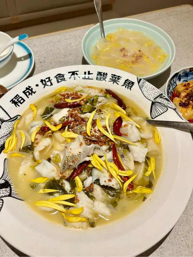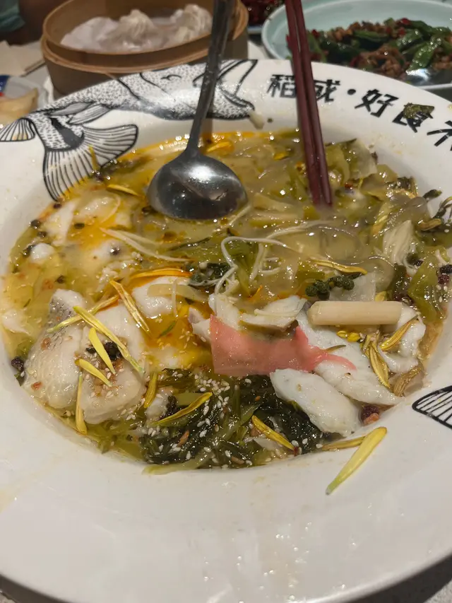 普普通通,雞肉算滑,但酒味唔夠,下面嗰層有酒浸住就香啲、入味啲。見到左右兩枱都叫酸菜魚,下次一定嚟試吓