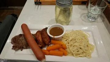 是日与屋企人揾地方食饭,近近地去过湿地公园附近食,见到呢一间稻神食堂都几靓装修,干干净净,有中式有台式餐。我见台湾肉燥饭几吸引,于是满心期待地叫咗个鸡扒肉燥饭,餐牌嘅相系好靓,但系出到嚟嘅卖相有少少出入,变咗有少少失望😂味道亦很一般般,鸡扒很嚡,食多一半就已经唔想再食。屋企人叫咗个带子卷鸡粒炆饭,个汤好味精😂真系可一不可再。不过侍应服务态度很好,入餐厅嘅时候很多位置不用排队,如果一家人要很早食晚饭都可以勉强将就。