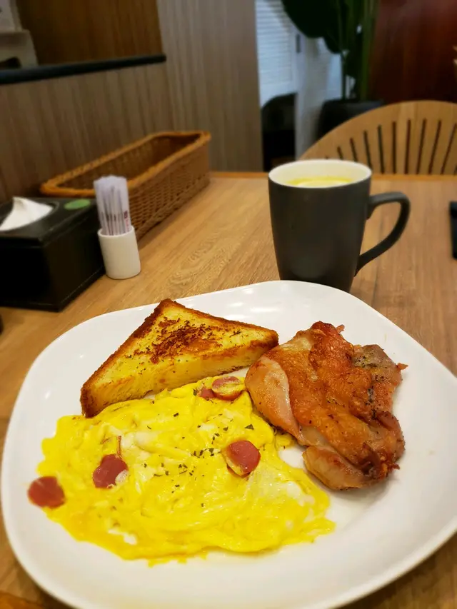今日12/7/2025(六)放假,休閑地去左濕地公園附近cafe,食個Brunch(早午餐)。cafe環境優雅,座椅弧形設計(好似扇型),夠特别,有卡座,亦可選靠落地玻璃四人枱,有歌聽,唔太大聲,幾好我揀左坐近落地玻璃嘅座位,景觀好靚,望出去係綠悠悠嘅樹,好舒服叫左醒晨早餐A揀左香葇豬扒,煎熟蛋配多奶咖啡有七款食物,好豐富吖,豬扒煎得有肉汁,牛油份量啱啱好,蕃茄少少焦,唔錯有分男女洗手間,夠衛生付款方式都有多種選擇,整體服務滿意的…查看更多