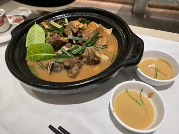 今晚约友人夜晚相聚, 好彩订左位, 不过由于另一边比人全包摆酒, 所以今晚特别旺场, 比较噪同多人😅长方卡位系比较迫, 不过都可以接受, 友人望下餐牌, 都好多野想食, 不过有d𩠌菜只系重覆在不同餐牌出现, 叫左一个羊腩🐏煲88元,真系算几抵食, 再加左一碟生菜, 另外叫左二个孖宝, 一个系上汤龙虾🦞伊面配小炒皇, 一个系烧鹅🪿例牌配蒸鱼🐟, 隔左一阵送来烧鹅🪿, 例牌都唔系好少, 个皮好香, 食落旧烧鹅🪿都烧得好靓, 肉质有咬口, 唔系好淋个只, 虽然有d位肥, 不过咬左d皮但OK, 再之后送来上汤龙虾🦞伊面, 份量都唔少, 食落味道都唔错, d龙虾🦞包满上汤味道好食👍, 肉质食落弹牙爽口😆😚, 再之后送来羊腩🐏,我见到都多人食, 88元份量都唔少, 食落味道唔错, 都唔算好有羊so味😅系皮有d地方及肉较硬, 可能炆得唔够淋, 入面另外有枝竹冬菇马蹄, 再加左碟生菜, 入晒味好食😘😋, 再之后来蒸鱼🐟, 都唔细条, 食落新鲜, 好滑😃😀再之后送来小炒皇, 份量都唔少, 依个d料食落稍为逊色, 比好多油炸鬼🤣😂不过整体算系敢, 合共1032元👍👍5人每人200元左右, 都值得再去😍😘😋…查看更多