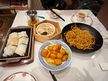 今日过来屋邨逛一回, 来依度饮下茶, 比安排坐二人卡位😅, 环境都几舒服, 地方都好阔落👍, 但埋去卡位比我见到mini小强😓, 之后望下枱上的餐牌好似无乜选择😆, 之后点左一碟渔香茄子🍆炆伊面要少油, 一个XO酱罗白糕, 一碟黄鱼🐟蒸肠粉, 一个羊肚菌灌汤饺🥟, 一个绵花鸡🐔, 一个鲍鱼蒸烧卖😋, 等左一阵炆伊面送到, 望到真系少油🥰👍, 不过茄子🍆就唔系好多😂, 食落都煮得几好同入味😍, 之后送来绵花鸡🐔, 望到卖相一般, 我无食到, 但望到个碟一d水份都无😆, 之后送来黄鱼🐟蒸肠粉, 味道都系一般, 肠粉唔系太滑😅, 之后XO酱罗白糕, 一d XO酱味我都食唔出, 还有个底垫好多油炸鬼😞, 我觉得只系斋炸罗白糕🙂↔️, 个灌汤饺友人说似系冬菇水😂估计质素都系麻麻地, 之后来鲍鱼蒸烧卖, 味道都算系好, 鲍鱼有鲍鱼味, 烧卖虽然肉多虾少, 不过个味都算系可以😃…查看更多