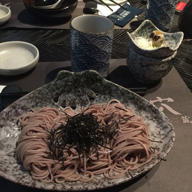 独自一人晚餐,来到上楼的穴蔵,全店都是漆黑黑的。先来刺身与刺身杂锦沙律,甜虾刺身带丁点黏口,bb吞拿鱼刺身很鲜嫩;至于杂锦沙律则好一般。 杂蘑面豉汤与海鲜蒸蛋,味道中等,像炖蛋般嫩滑,属清甜类,好让胃子和暖一下。 左口鱼裙边及三文鱼火炙寿司,没有烧得太焦,保持著滑嫩口感。 天妇罗(大虾,九肚鱼,日本甜薯), 配三款盐(绿茶,原味,咖喱)拌食, 脆浆既薄又脆,又不油腻,虾弹鱼嫩滑,甜薯还有点黏黏的,非常捧。 最后,来个日本红豆雪糕作结。