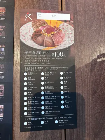今日约咗朋友去公司附近康怡食饭一直都有听同事讲,呢度开咗间高水准日本餐唔知系咪因为星期一,唔使等好耐,职员即刻帮我哋安排入座系门口见到佢有个牌写住自选刺身当