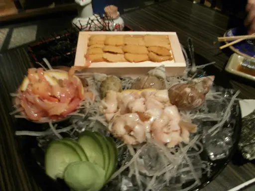 星期六去食dinner,喺朋友仔介紹下去咗一間叫千秋樂既日本嘢,去到樓下見到有個嬸嬸拎住個牌,上面好大隻字寫住 "赤膽雙雄"﹗ 攪笑﹗我地上到去當然即刻叫呢個咁攪笑既set啦~ 原來係赤貝+海膽刺身,咁都比佢地諗到... 勁﹗我地仲叫咗翡翠螺刺身。淨係刺身都算係抵食呀~ 果個赤膽雙雄加個螺,足料之餘又夠新鮮,叫既時候其實都有啲擔心,因為出面成日都食到呢海膽唔新鮮... 溶溶地咁....刺身 赤膽雙雄+翡翠螺(海膽刺身跟紫菜~ good!)銀鱈魚 - 好大件串燒牛舌&腸 - 味道無特別,不過姐姐就好細心,佢拎埋黎之後就問我地要唔要幫我地切開什錦天婦羅 - 最正係果幾隻蝦,其他就普普通通啦唔好既係啲位有點迫.... 坐得唔夠舒服....…查看更多