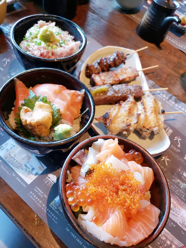原來喺世貿中心入面,都有一個有靚景嘅日本餐廳。Team lunch 過黎食飯慶祝生日,叫左個mini丼,起初以為好細碗會好肚餓,原來都唔係,因為佢個set 都配幾多野:主食:叫咗個海膽三文魚飯,三文魚同海膽都好新鮮,佢仲可以玩兩串唔同嘅串燒,有牛柳粒、牛肋骨肉、雞肉、勉之雞條、雞翼等等....佢仲配埋沙律、錢財、烏冬或者蕎麥麵、仲有甜品!咁樣食一食其實好飽。不過呢,唔知係冇人啊定係點樣啦,上菜就比較慢,要俾d耐性。甘唯有慢慢食,幫助消化啦~…查看更多