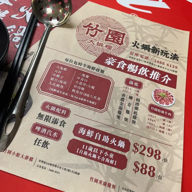 「竹園台式火鍋飯店」就喺柴灣漁灣街市熟食中心樓上,走入去有種傳統大排檔 vibe,同時又有 IKEA 清新木系感,整體感覺乾淨暖心,很有台味親切感。重點係佢哋火鍋湯底選擇多到眼花繚亂:除了常見嘅台式麻辣、酸菜白肉鍋、雜菌涼瓜鳳梨鍋,仲有黑白美人養生鍋(烏雞+杞子桂圓+花膠)、薑母鴨鍋⋯⋯真係任揀!黑白美人湯底特別滋潤,清甜帶清香,有啲似人參雞但又更滋補,最啱寒冷季節慢慢喝。配料方面陣容同樣迷人:必點手切牛頸脊,見到花紋就知高質,入口即溶、牛味突出;招牌四寶丸有梅菜豬肉丸、鵝肝牛丸、芝士墨魚丸、古法鯪魚丸,每粒都飽滿爆汁,特別推薦梅菜豬肉丸嘅鹹香同鵝肝牛丸嘅滑,夾埋食真係意外咁夾;仲有自家手工墨魚餃,皮薄有嚼勁;蝦籽蝦滑/白鱔片每款都鮮甜爆汁好味;炸噹噹響鈴只需喺湯底嗟幾秒就脆得不得了!即刻升級品嚐感官層次。環境同服務都有街坊溫度,仲有位置多、有電視螢幕可以半邊食火鍋半邊追劇,加上熟食中心本身乾淨又通爽,坐得舒服。人均大約 HK$100–200,味道質素高、食材有心思、選擇多而且價錢合理,打邊爐食得盡、食得爽,絕對係柴灣打邊爐好選擇!…查看更多