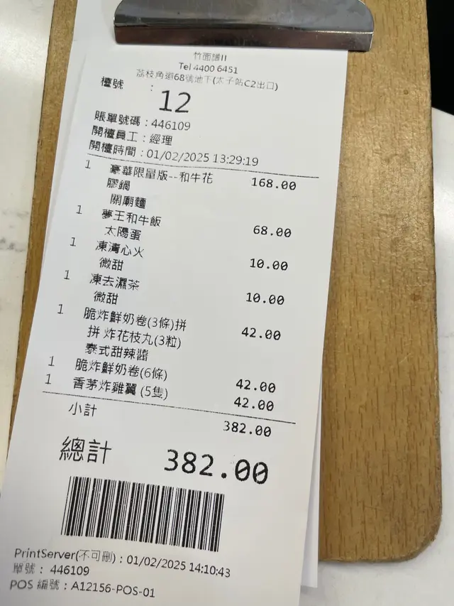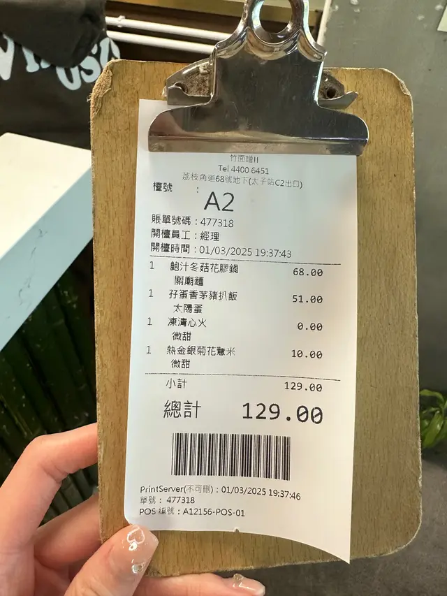 竹面譜 (太子) 网址: https://s.openrice.com/QrLS0rqGC00 地址: 香港太子荔枝角道68號地舖 电话: +852 44006451